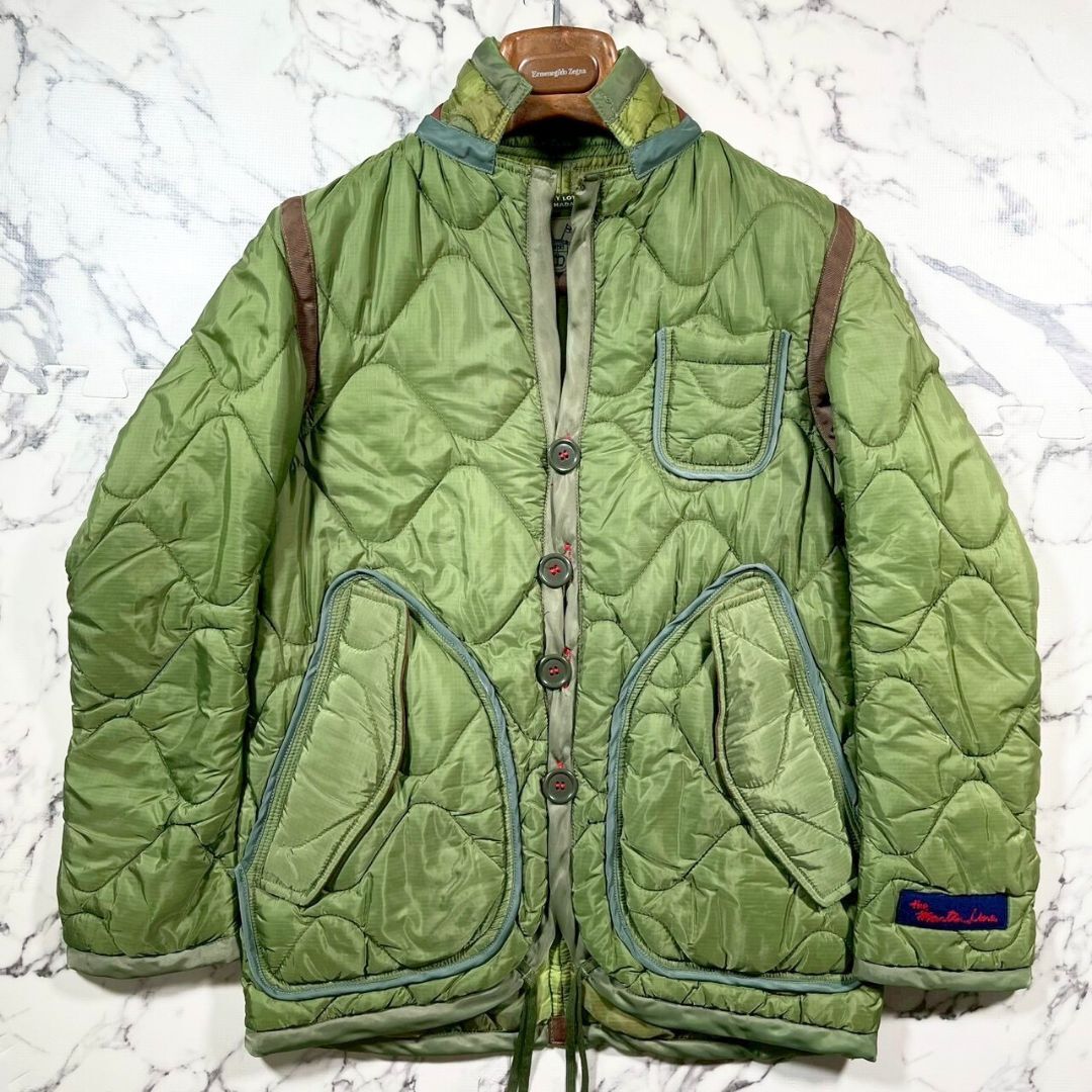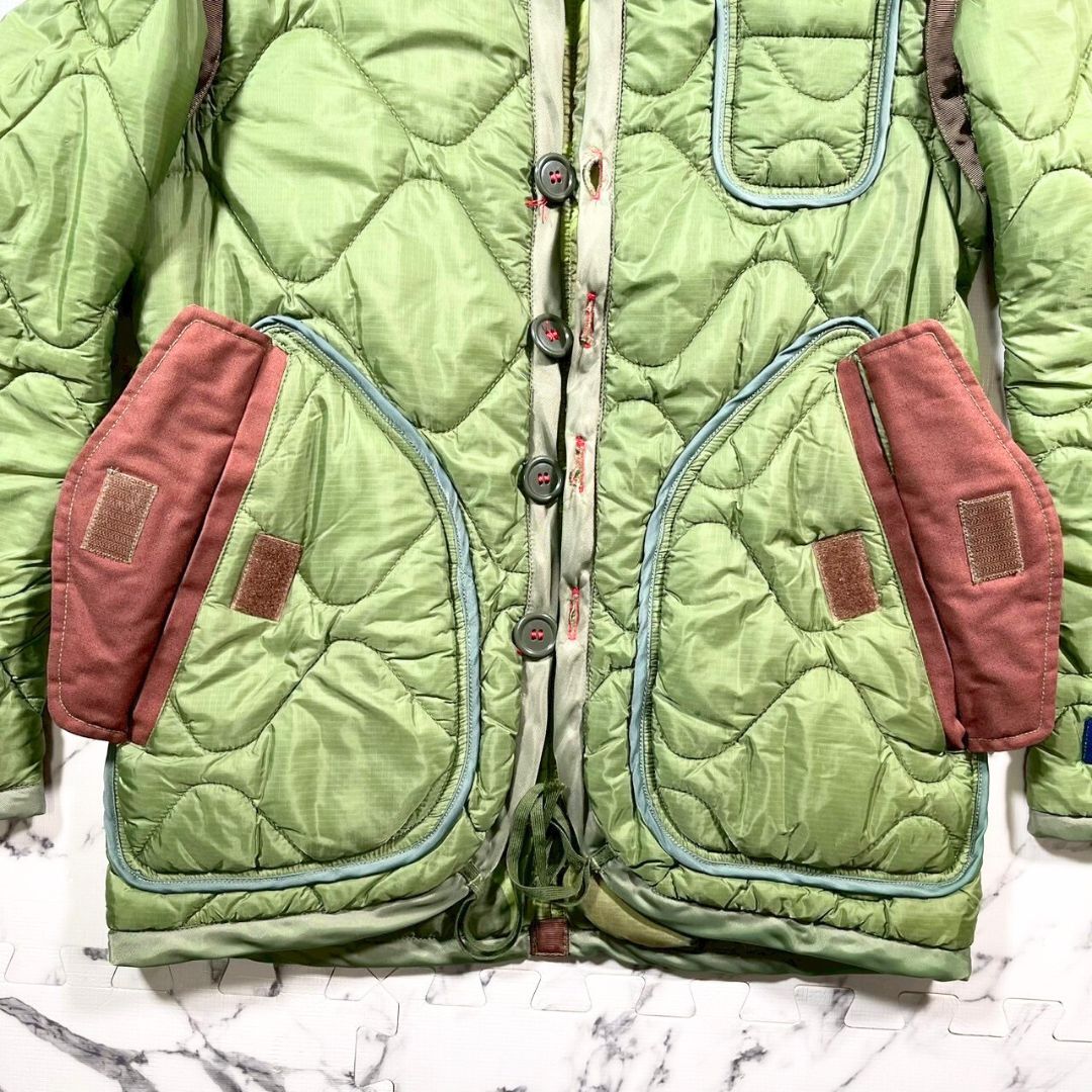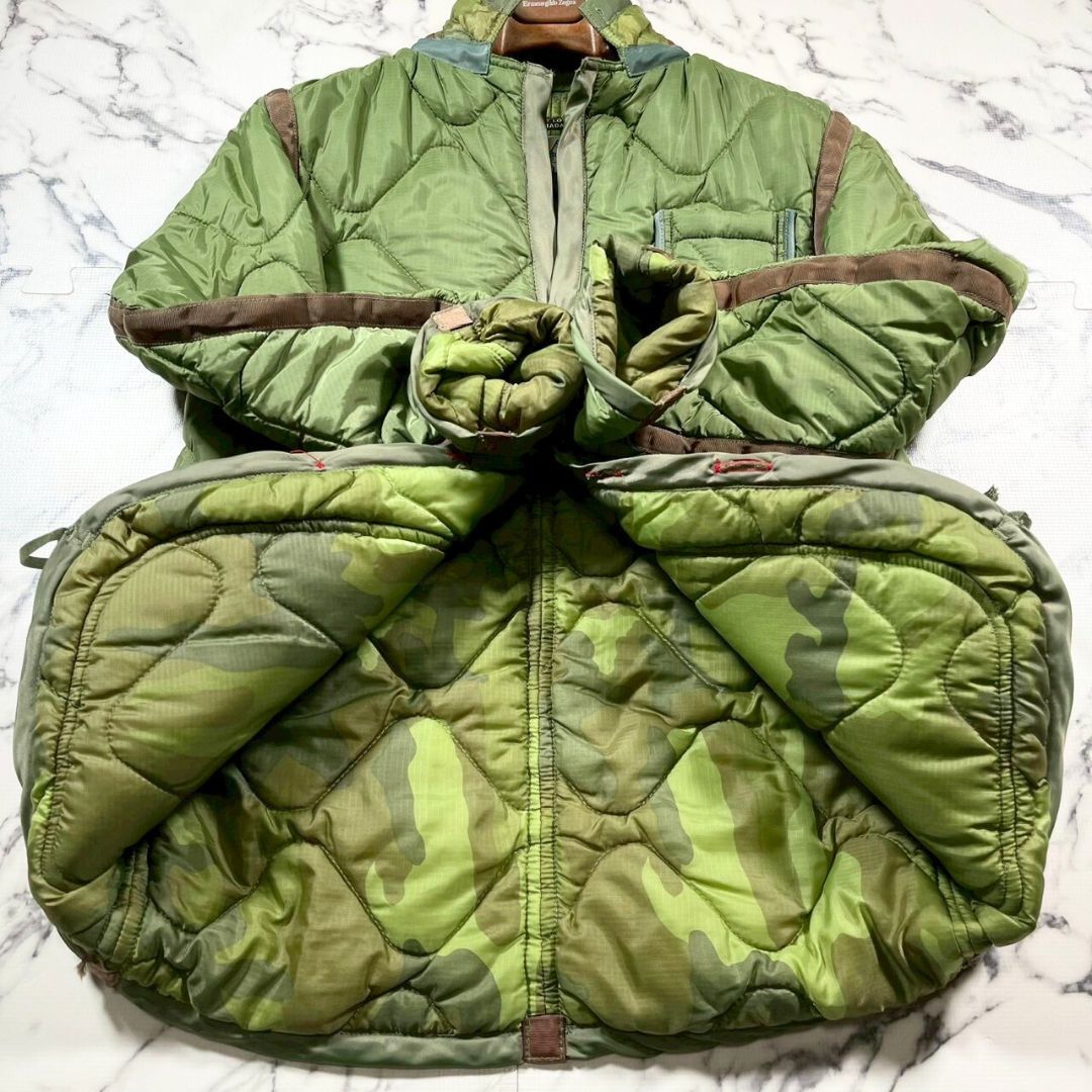 極美品/ML10096●東洋エンタープライズ キルティング ライナー ナイロン ジャケット 裏地 カモフラ 迷彩 パイピング ミリタリー グリーン S