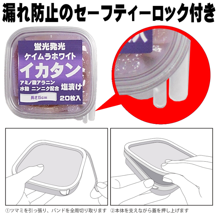 釣り餌 イカ イカタン イカ短冊 アカタン アジ釣り エサ イサキ釣り エサ カサゴ釣り エサ シロギス釣り エサ アマダイ釣り エサ 釣り侍のデコ餌シリーズ 山下漁具店 イカタン イカ短冊 つりエサ用 アミノ酸甘味成分アラニン・激臭ニンニク・水飴配合 紫外線 蛍光発光 ケイムラホワイト イカタン 塩漬け 長さ 5cm 20枚入り イカ エサ イカ 餌 釣り餌 イカ 冷凍 イカ アカタン 釣り 釣り侍のデコ餌シリーズ 山下漁具店