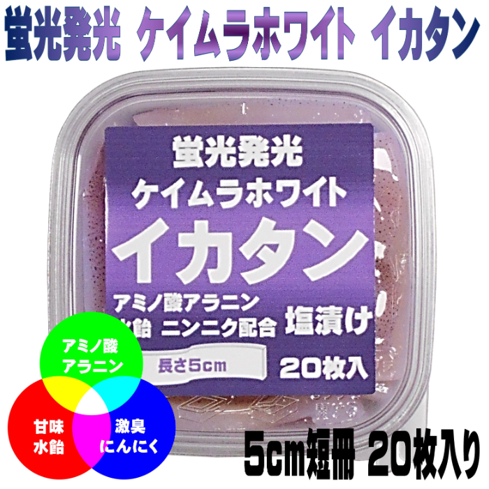 イカタン イカ短冊 釣り餌 アミノ酸甘味成分アラニン・激臭ニンニク・水飴配合 ケイムラホワイト イカタン 塩漬け 長さ5cm 20枚入り