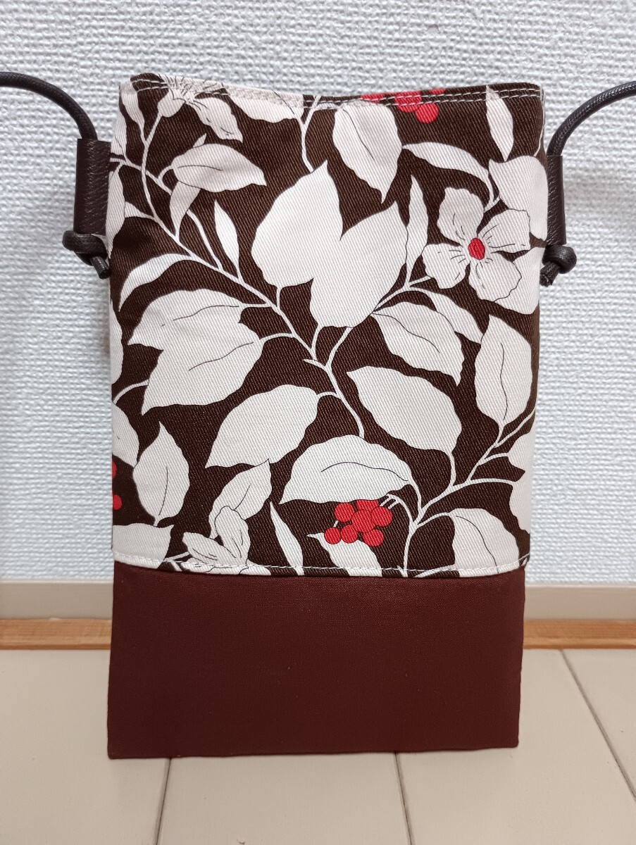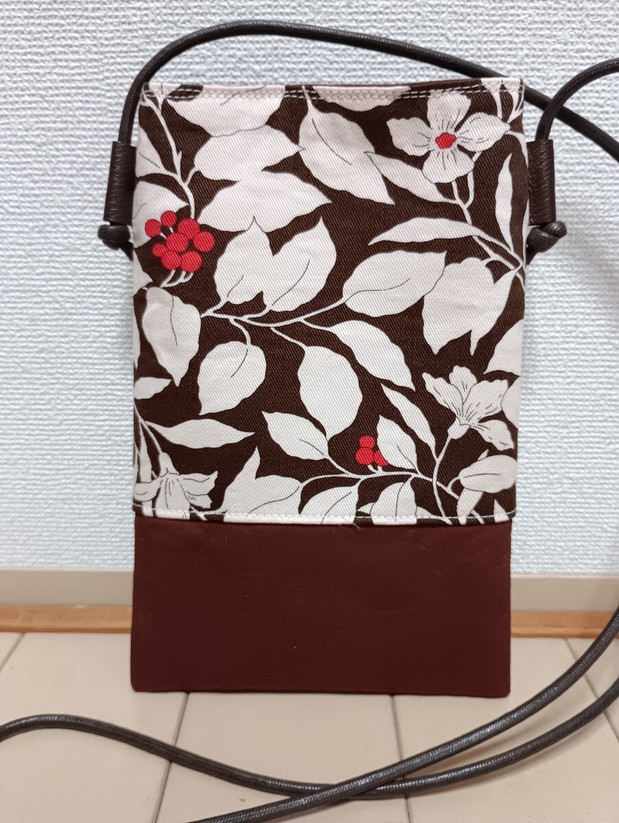 ☆ハンドメイド☆焦げ茶色花柄&茶色☆小さい ショルダーバッグ☆ポケット付き☆携帯ケース☆スマホショルダー☆スマホポーチ☆