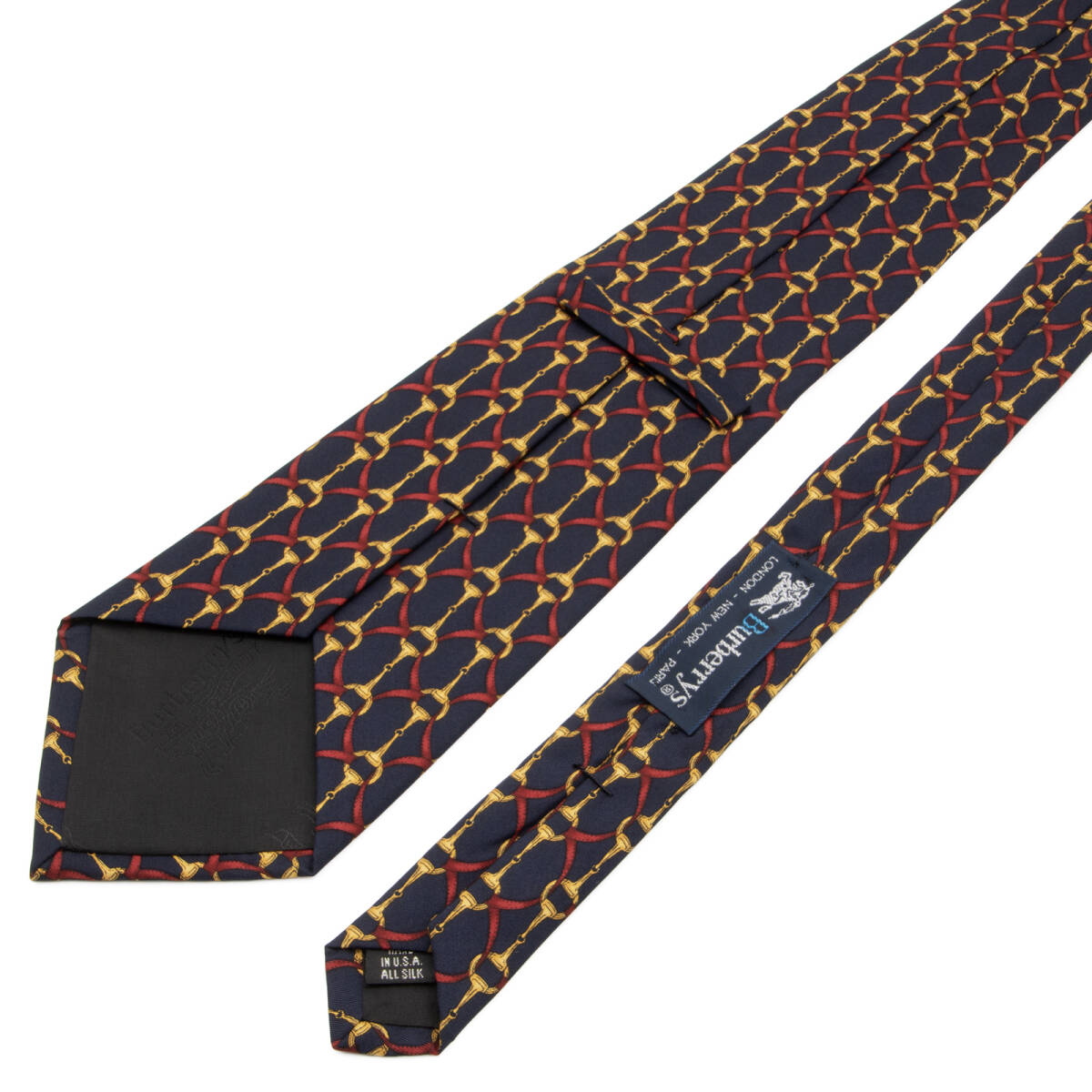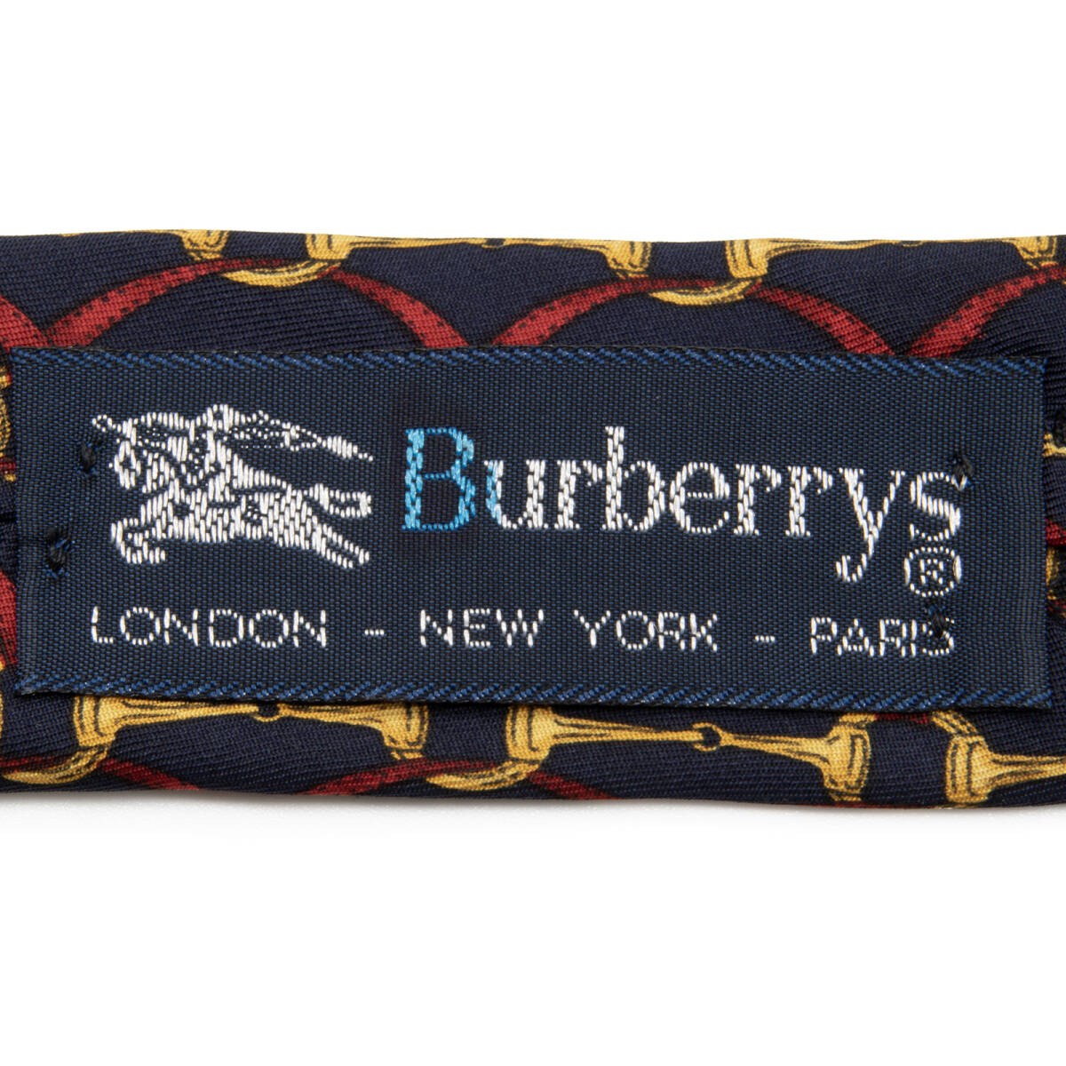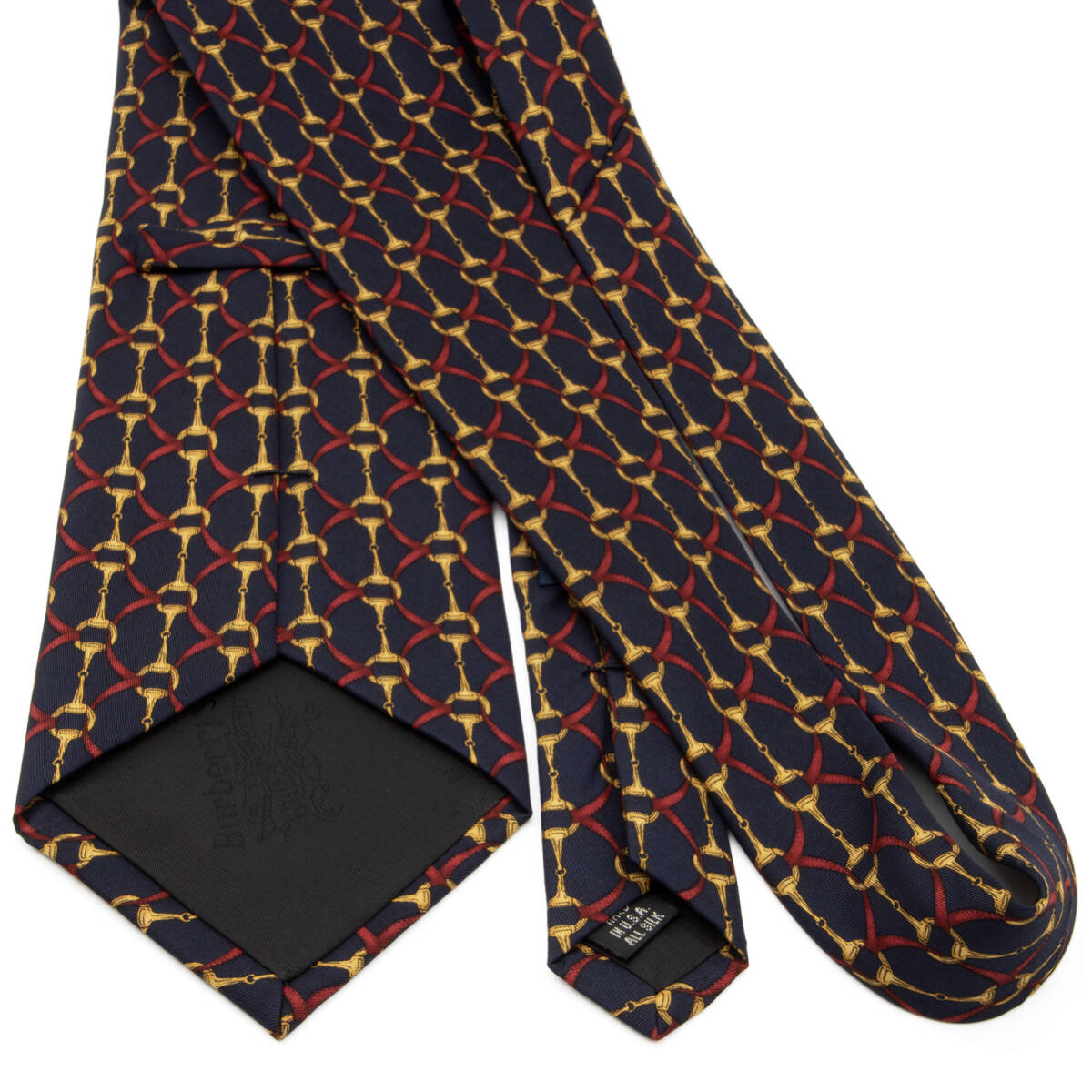 こちらは格式高い馬具のモチーフが胸元を優雅に飾る、バーバリーのネクタイでございます。