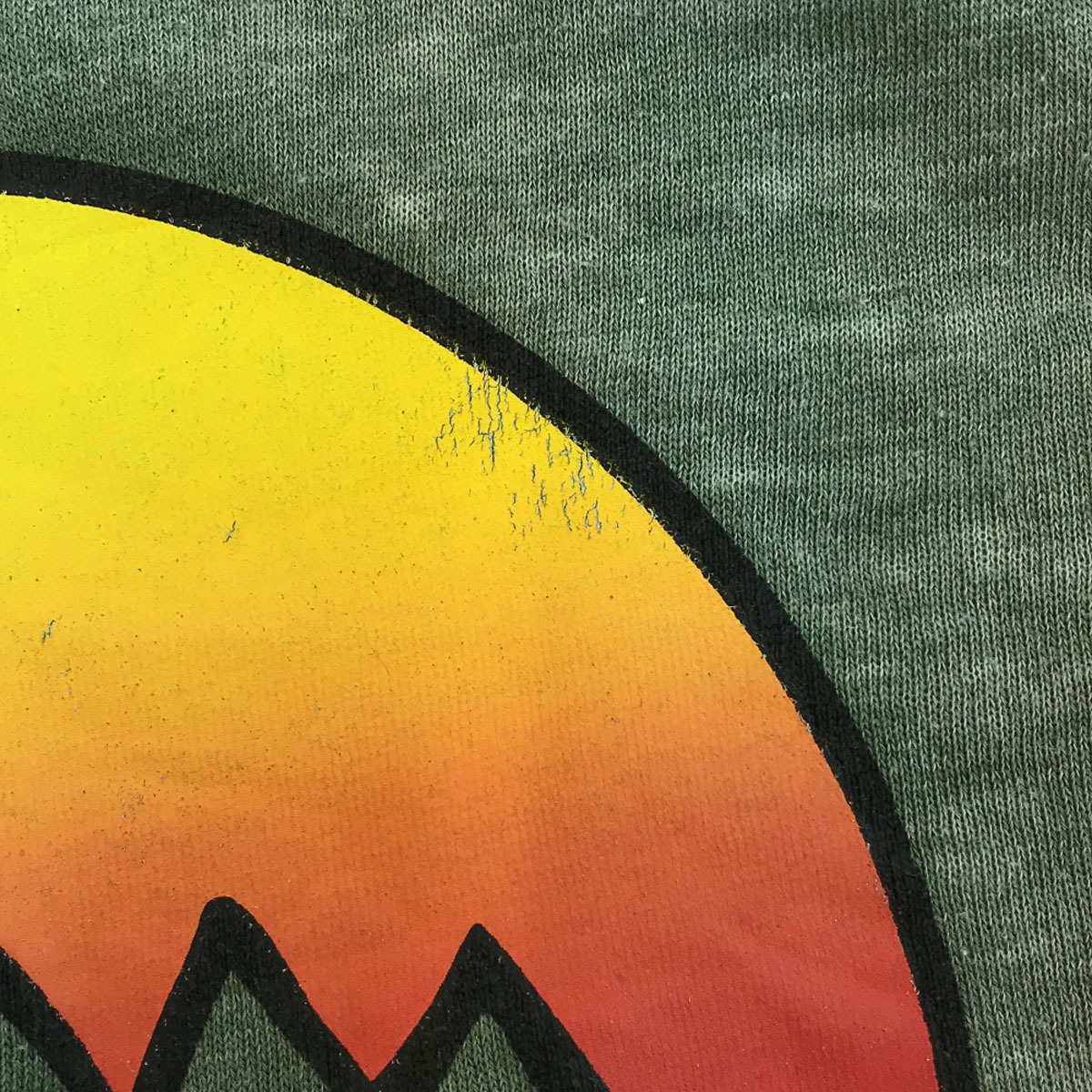 詳細 | 全体的に色褪せ、毛羽立ち、前身頃と両袖に汚れあり。前身頃にはプリントひび割れと判子の跡のような汚れあり。破れ等の目立ったダメージはございませんが、古着にご理解の上ご購入をお願い致します。 |
