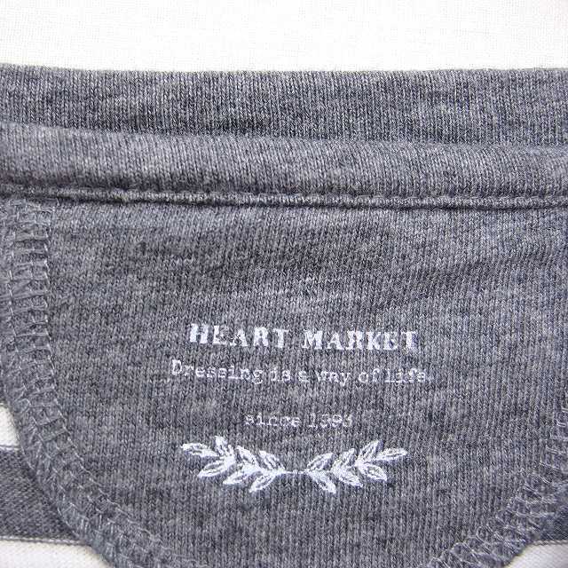 ハートマーケット HEART MARKET コットン 綿 Tシャツ ボーダー 長袖 丸首 F グレー 灰 ホワイト 白 /FT43 レディース