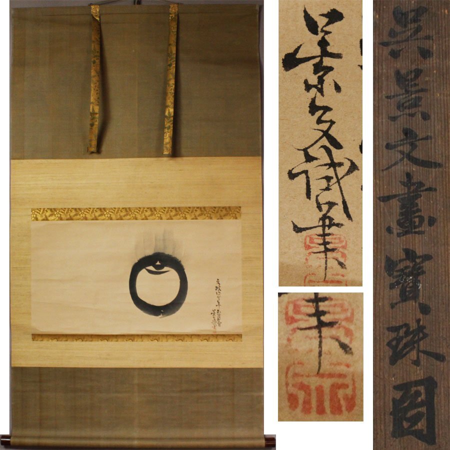 ■商品説明 下記、巨匠 松村景文の手によって、 丁寧な筆使いにて、(文政11年・1828年)の元旦に、 宝珠を描かれた作品です。 《 松村景文 》 別号:華渓。名:直治。字:士藻。 松村呉春の弟で画法を兄の呉春に学び更に軽快さを加え 山水花鳥画を得意として四条派を一層発展させた。 天保14年(1843年)没。行年65歳。 ■絹本・肉筆 ■状 態 時代なりのヤケ・オレ等あり。 ■寸 法 軸寸法/約121.0cm×約68.5cm。 本紙寸法/約 31.0cm×約57.5cm。 ■落 款 御覧の様な銘・落款等あり。 ■箱 書付箱。 【即決・送料無料】の表示商品に限り、 一部地域(北海道・沖縄)を除き、送料無料キャンペーンを実施しております。 ご希望の方は、お早めに入札して頂けます様、宜しくお願い致します。 【※※なお、作品に対して疑問や質問がある場合には、※※】 質問欄もしくは、ストア情報に当方の情報が記載されておりますので、こちらをクリックしてお問い合わせ下さい。 宜しくお願い致します。 |