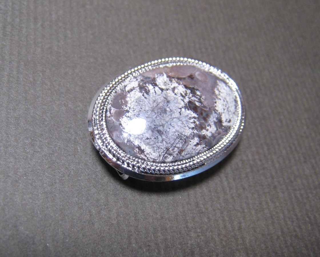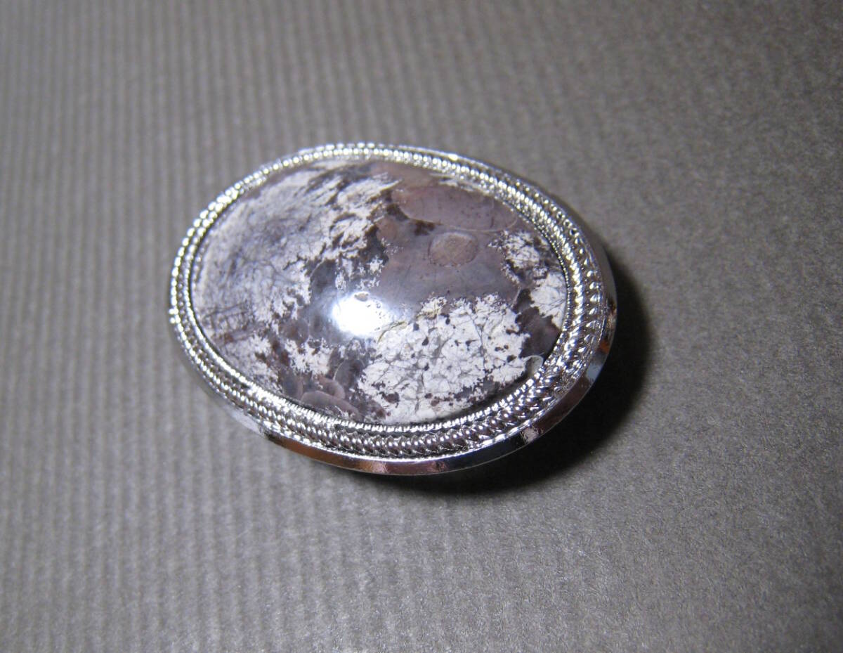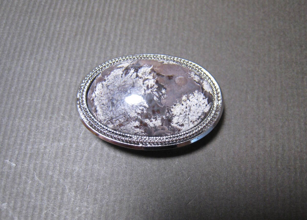 菊花石 楕円形 帯留 着物 帯飾り 貴石 和装小物