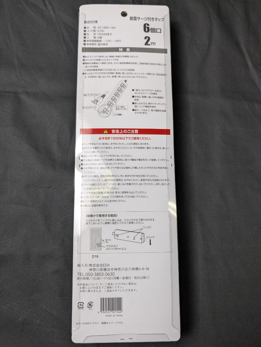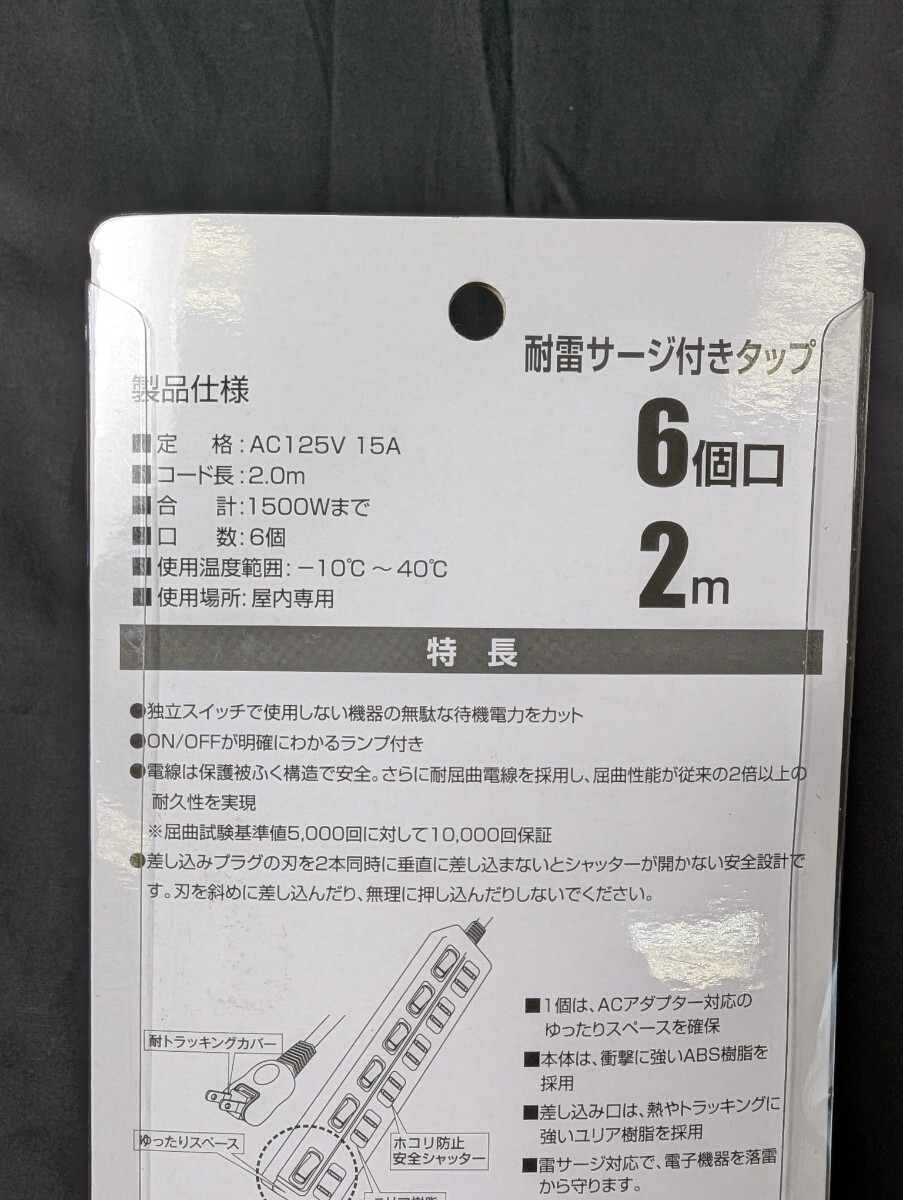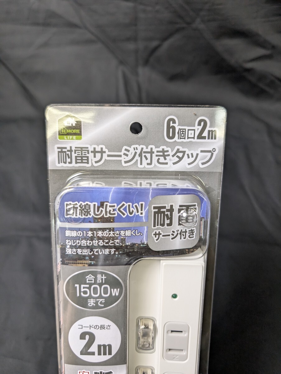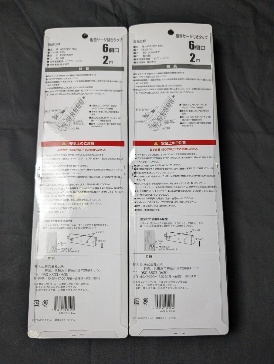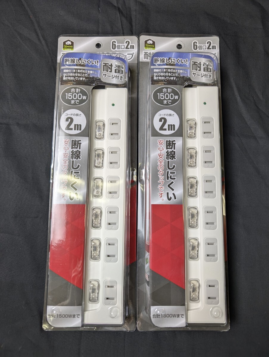 新品 イエモア 電源タップ AC 延長コード 2点 まとめ  耐雷サージ 個別スイッチ 6個口 2m 最大1500wまで ロイヤルホームセンター