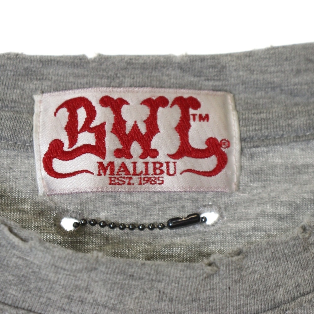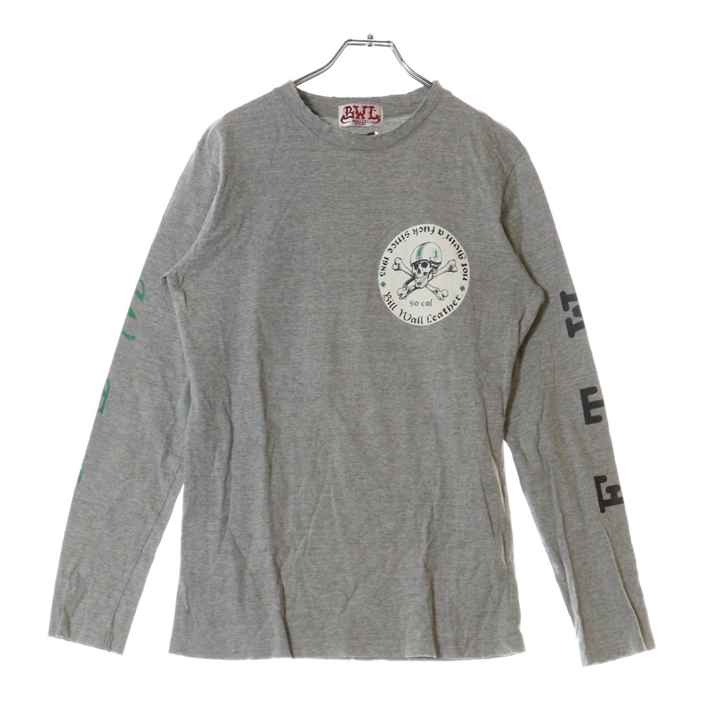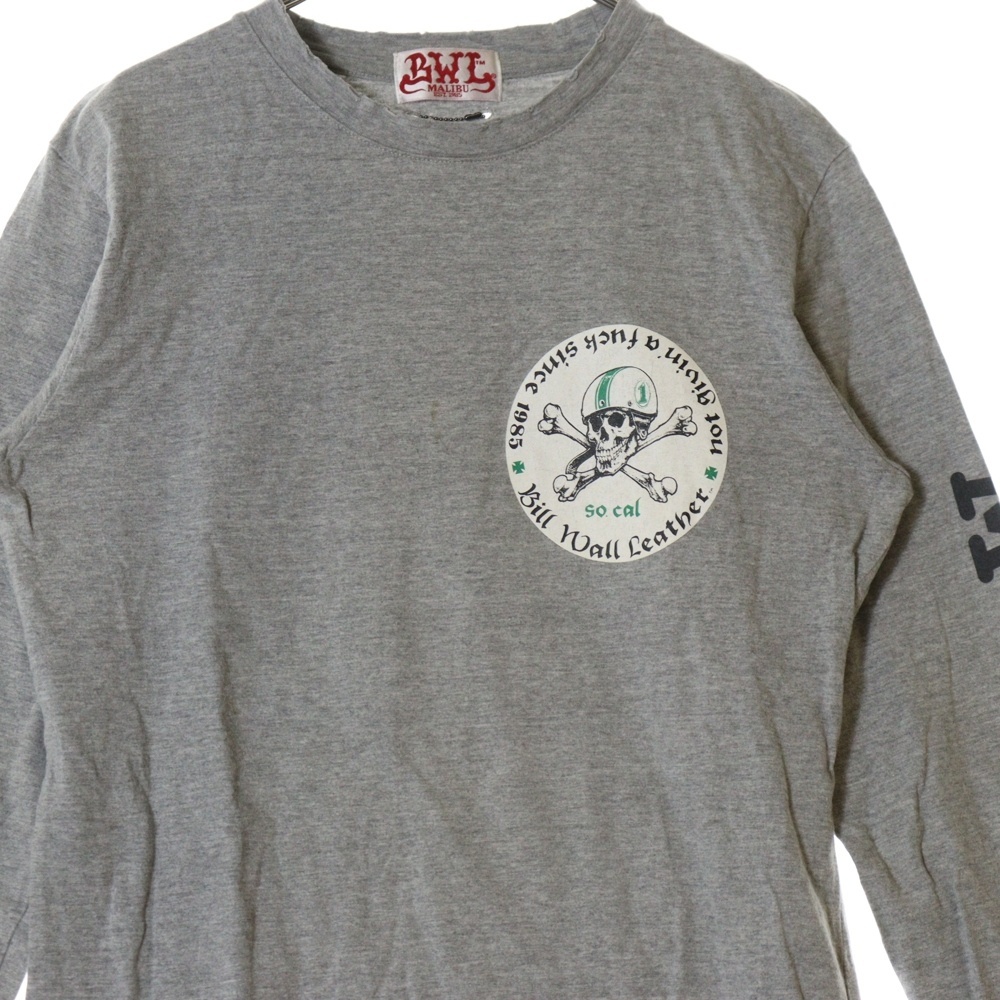 ビルウォールレザー スカルプリント ダメージ加工 チャーム付き クルーネック長袖Tシャツ カットソー グレー MTS0605AW
