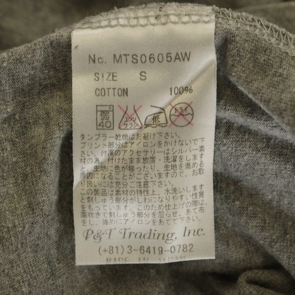 品名スカルプリント ダメージ加工 チャーム付き クルーネック長袖Tシャツ カットソー グレー MTS0605AW