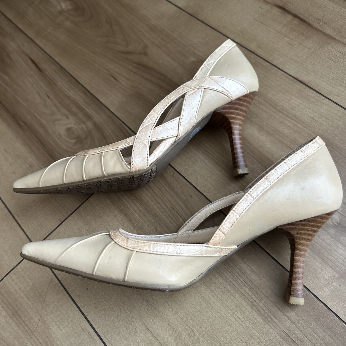 POOL SIDE プールサイド レザーパンプス  パンプス ベージュ 21.5cm 靴
