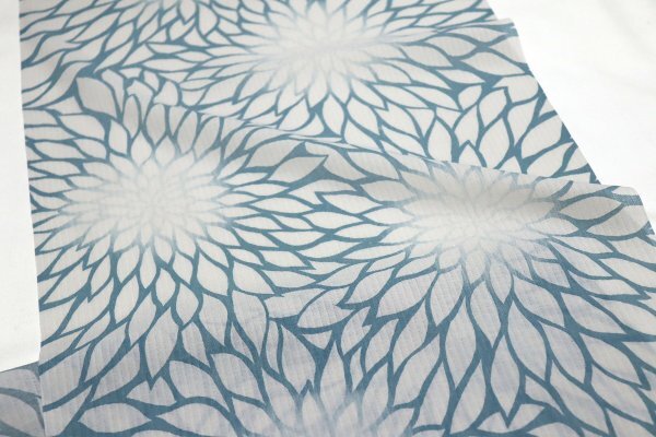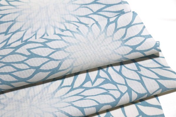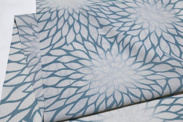 | 【京わぎれ】東レ 爽竹 ストレッチ 長襦袢はぎれ むじな菊文様 薄柳鼠色地×くすんだ青緑 替え袖用 2.2m ② | ||||