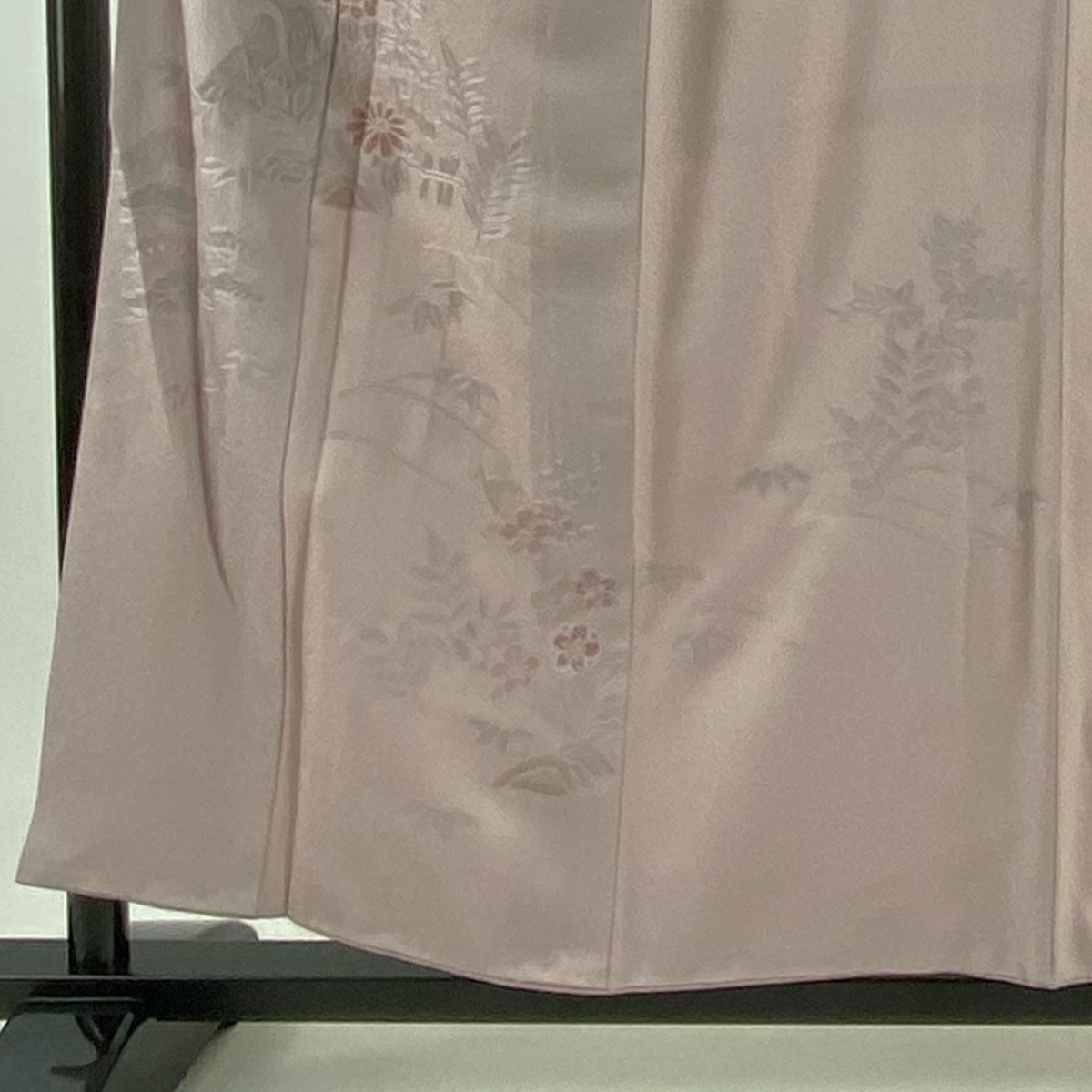 | 付下げ 秀品 菊 建物 刺繍 薄紫 袷 身丈155.5 裄丈64 M 正絹 【中古】 |