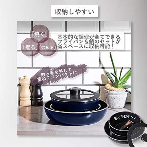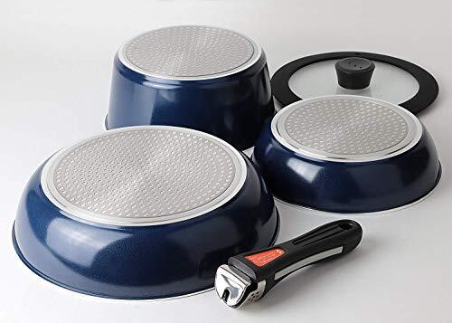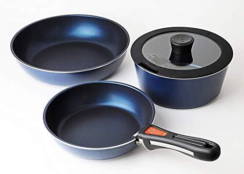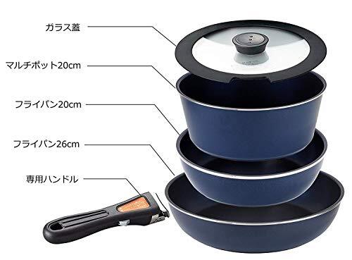 ・ダークブルー フライパン鍋5点セット HB-3975・・Size:フライパン鍋5点セットColor:ダークブルーPatternName:IH対応・サイズ:(約)マルチポット20cm/外径21.5×高さ11cm、フライパン20cm/外径21.5×高さ5cm、フライパン26cm/外径27×高さ6cm、ガラス蓋/外径21.5×高さ4cm、ハンドル/全長17×幅4×奥行4cm・原産国:本体・ガラス蓋/中国、ハンドル/韓国・マルチポット容量:2.5L・セット内容:マルチポット20cm、フライパン20cm、フライパン26cm、ガラス蓋20cm、ハンドル・ガス火はもちろん、IHクッキングヒーターやハロゲンヒーターなどオール熱源に対応着脱式のハンドルの採用により、重ねてコンパクトに収納できる 金属ヘラが使える、ダイヤモンド粒子を配合した内面3層強力コーティングの「ブルーダイヤモンドコート」 汚れやコゲがこびりつきにくく、お手入れラクラク ガス火はもちろん、IHクッキングヒーターやハロゲンヒーターなどオール熱源に対応 食器洗い乾燥機使用不可