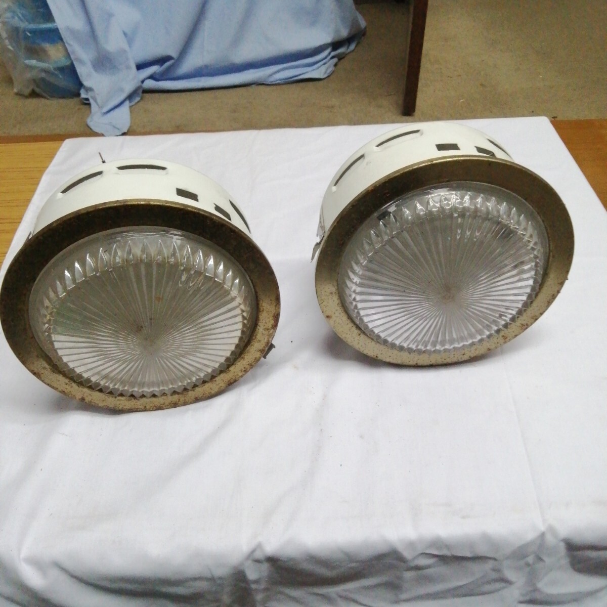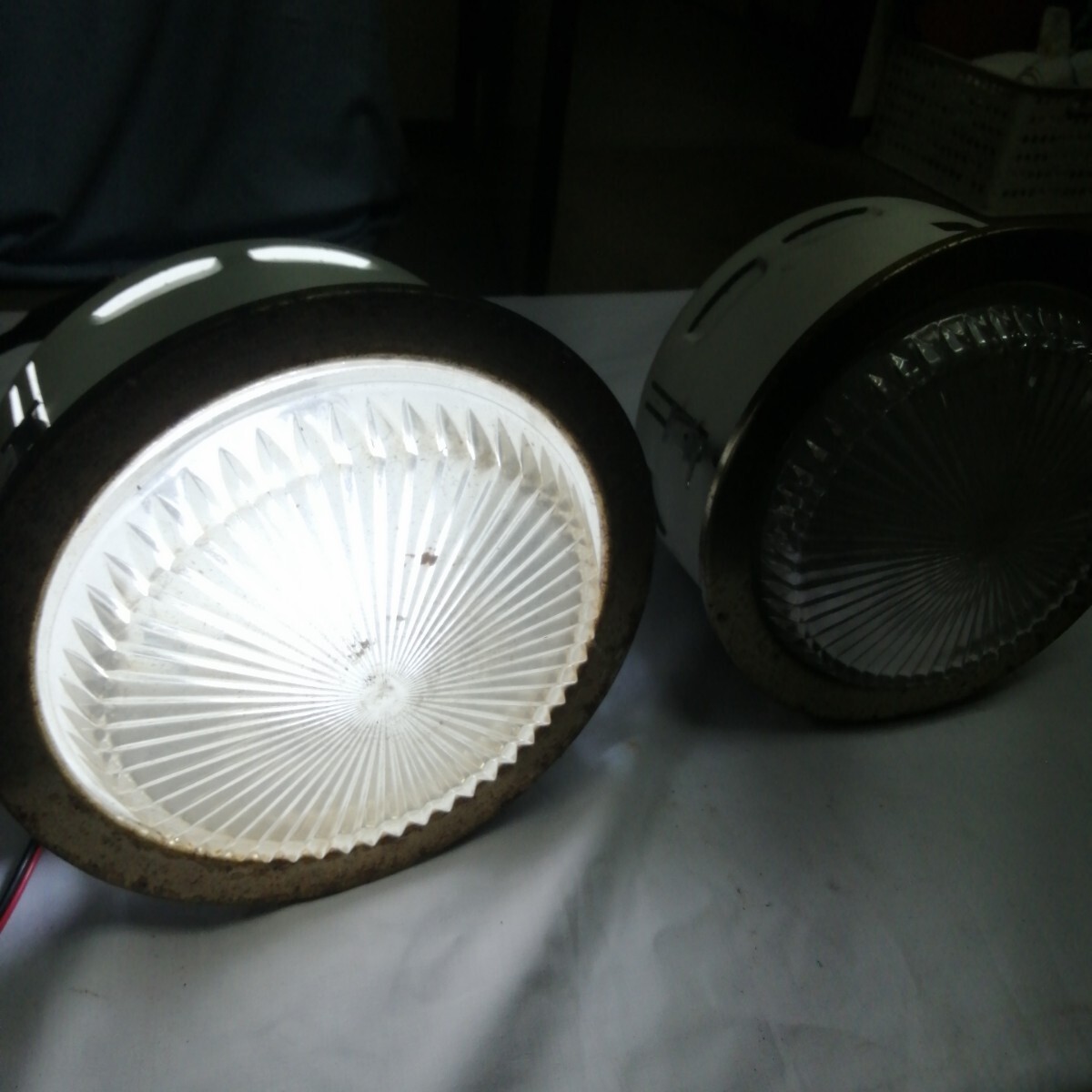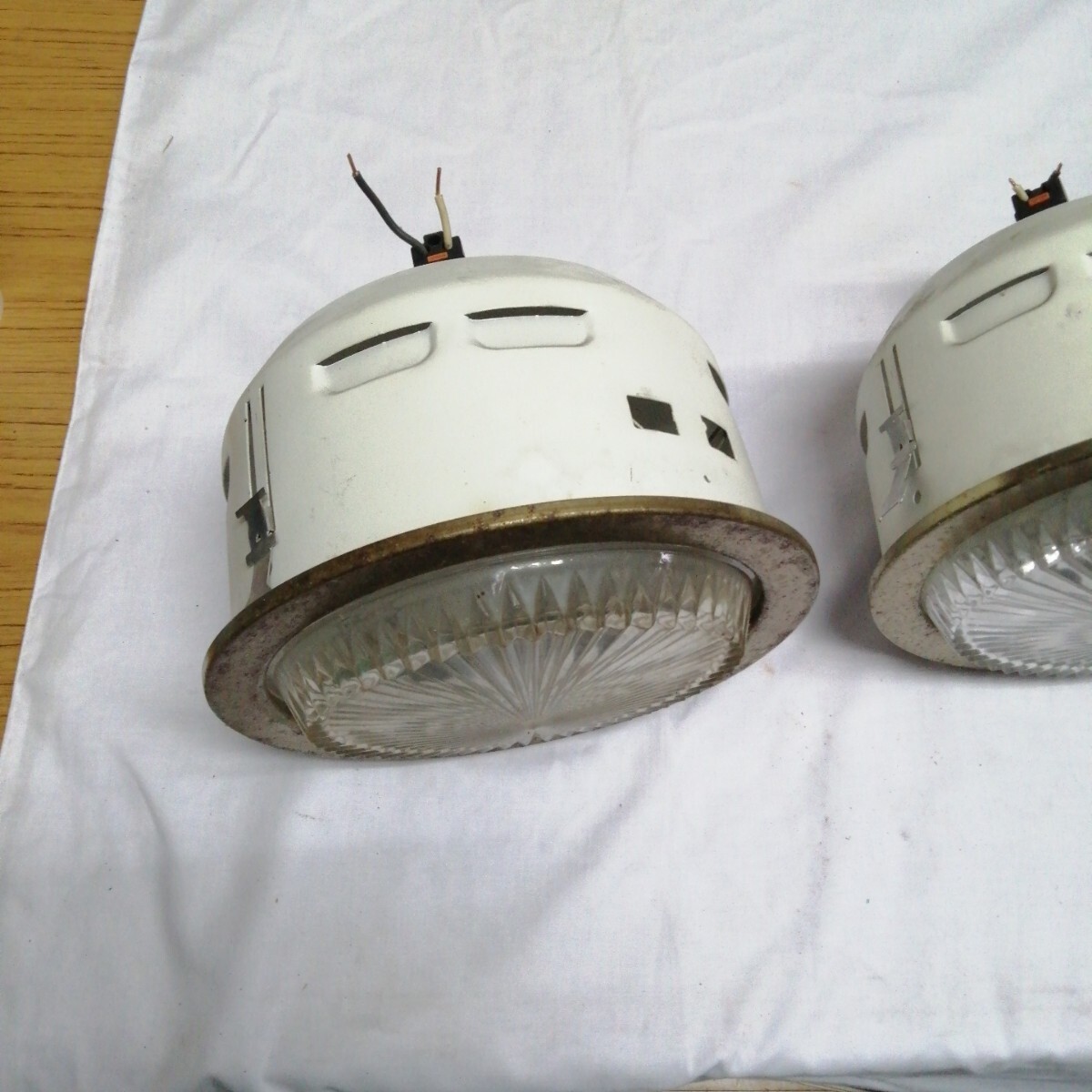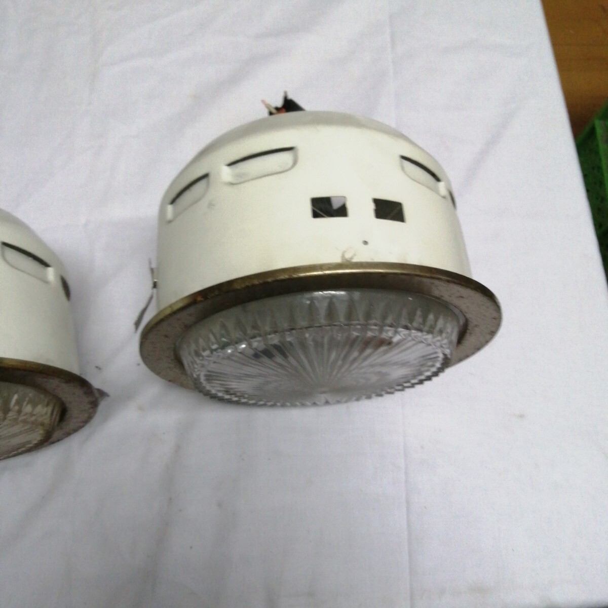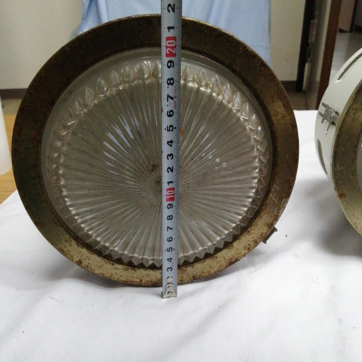 計2個 昭和レトロ 照明器具 吊り下げ 埋め込み 天井 スポット アンティーク 硝子 ガラス 丸型 動作確認OK.