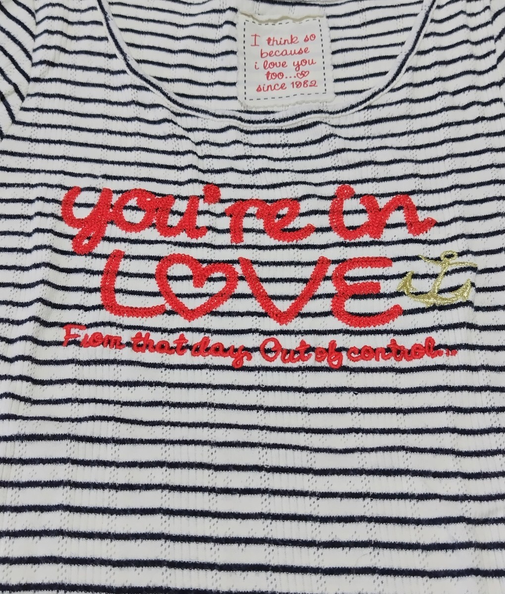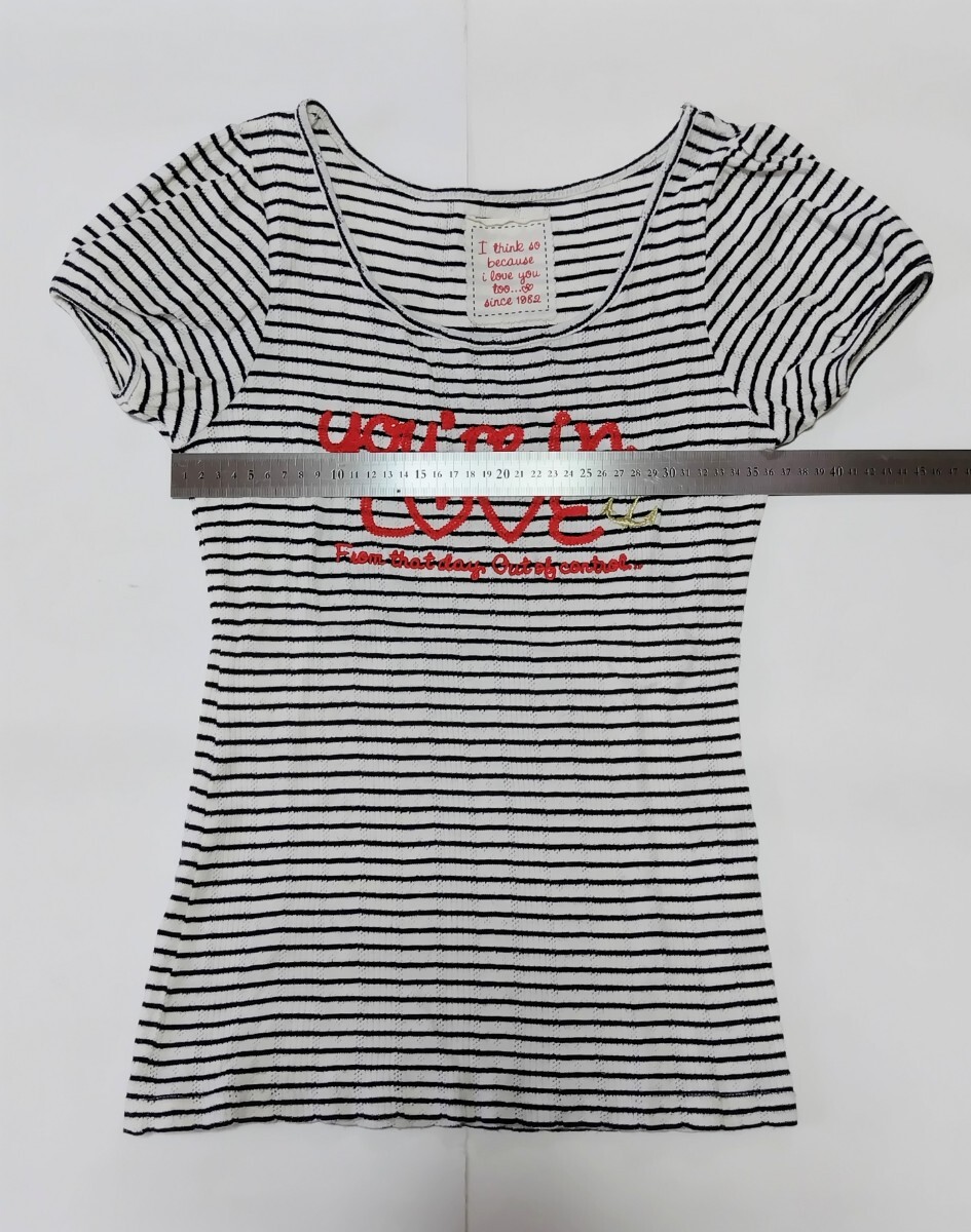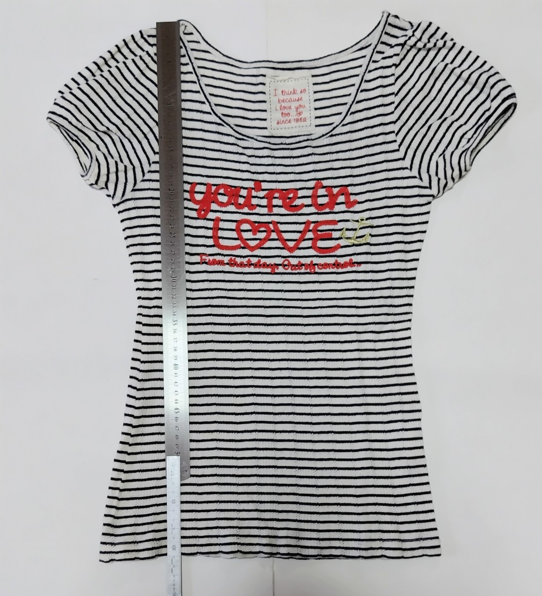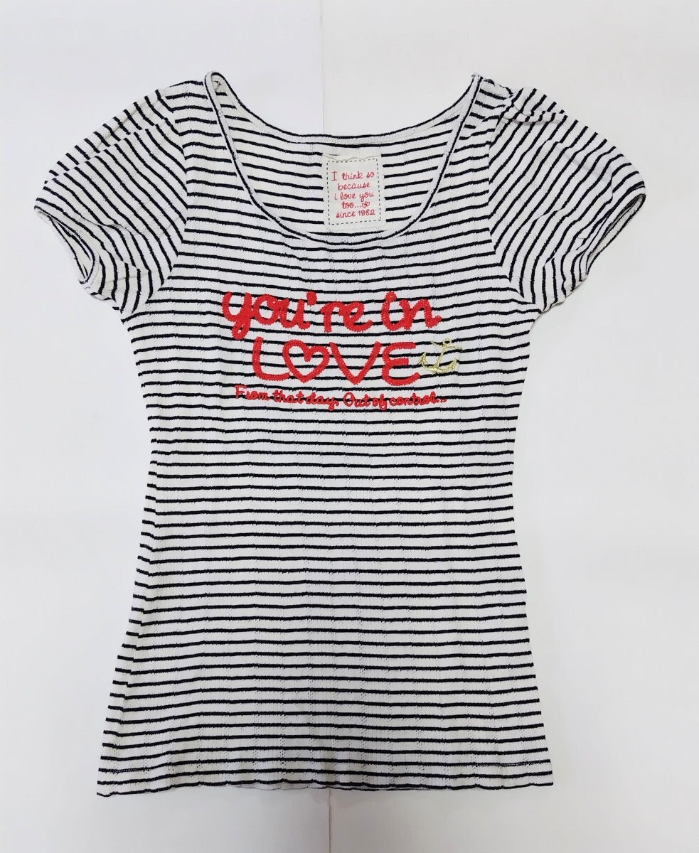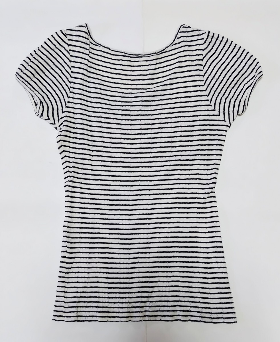 美品】 半袖Tシャツ  リブ素材 ☆ ボーダー 刺しゅう ☆ シロ ☆  150㎝ ☆ ☆ ポイント消化