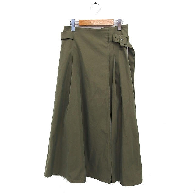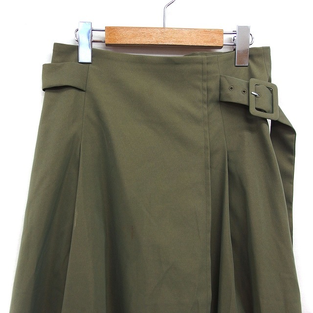未使用品 ビームスハート BEAMS HEART タグ付き アシンメトリー ラップスカート ロング丈 Aライン 無地 M オリーブ /FT34 レディース