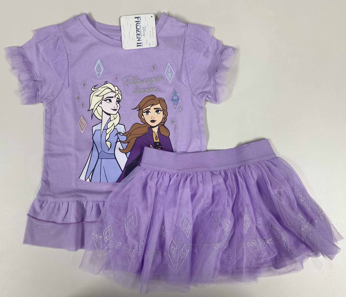 新品 110 上下 セット ★ ディズニー チュチュスカート付き アナ雪 Ⅱ Tシャツ セットアップ フリル キラキラ 女の子 エルサ アナ Frozen