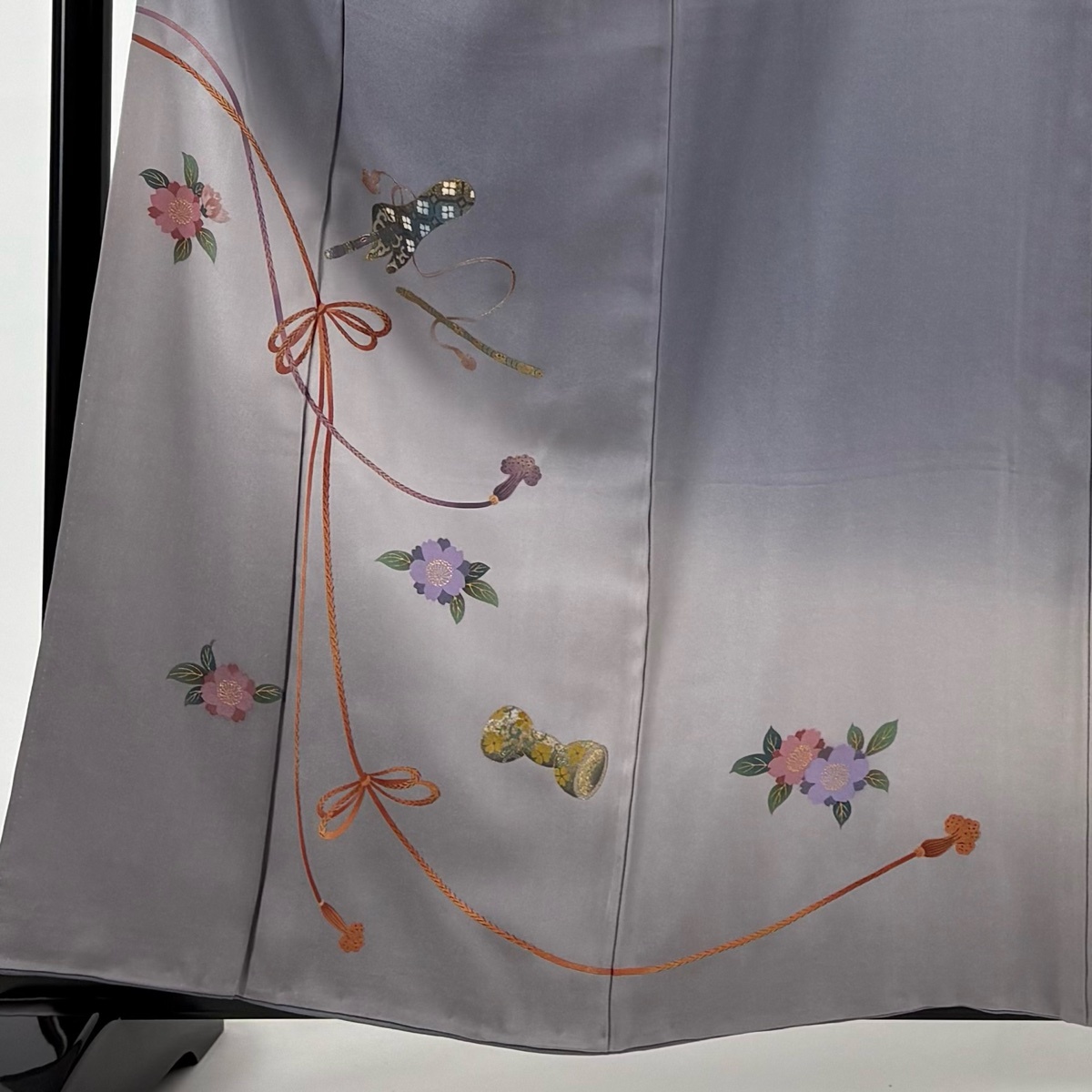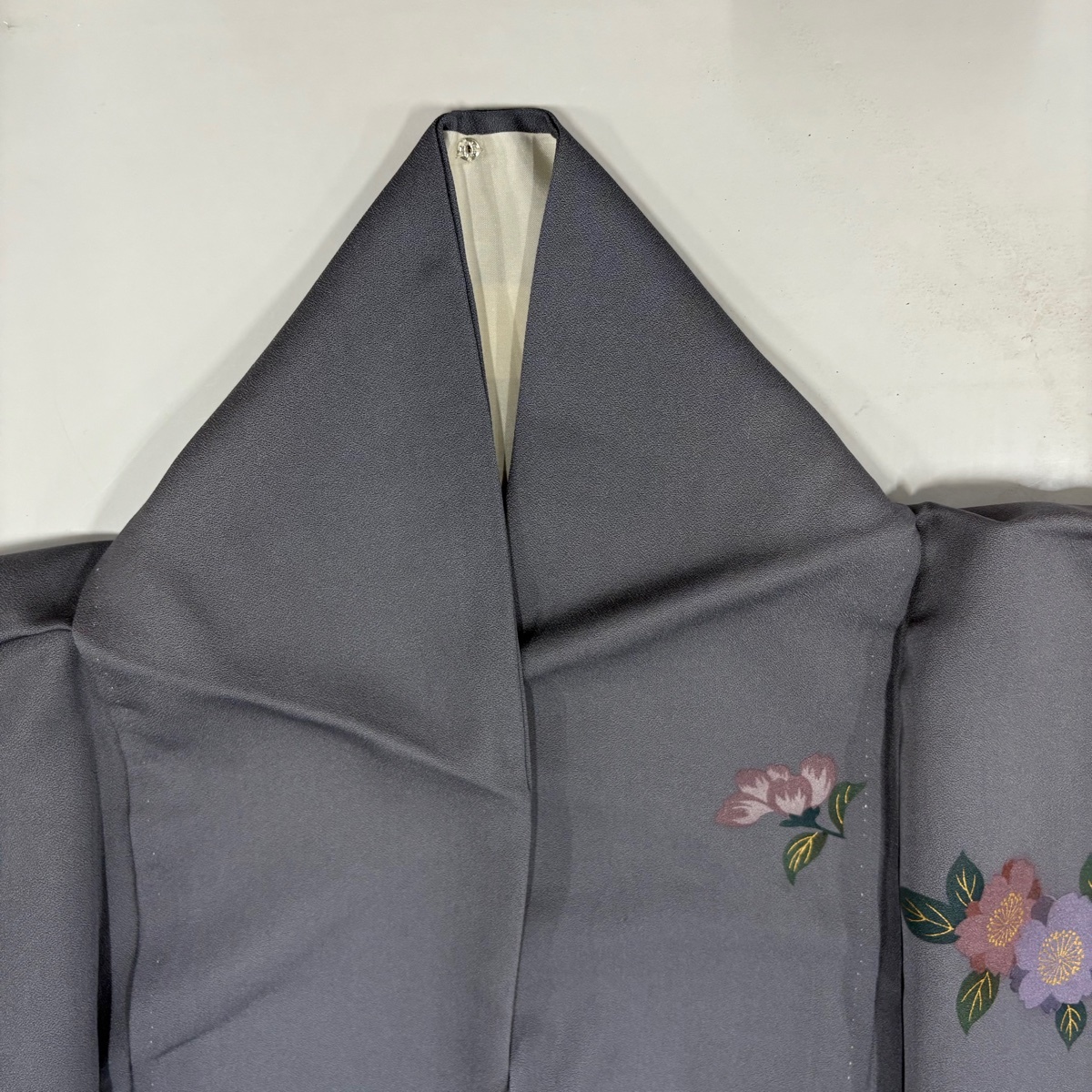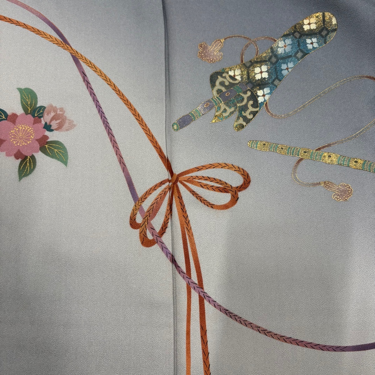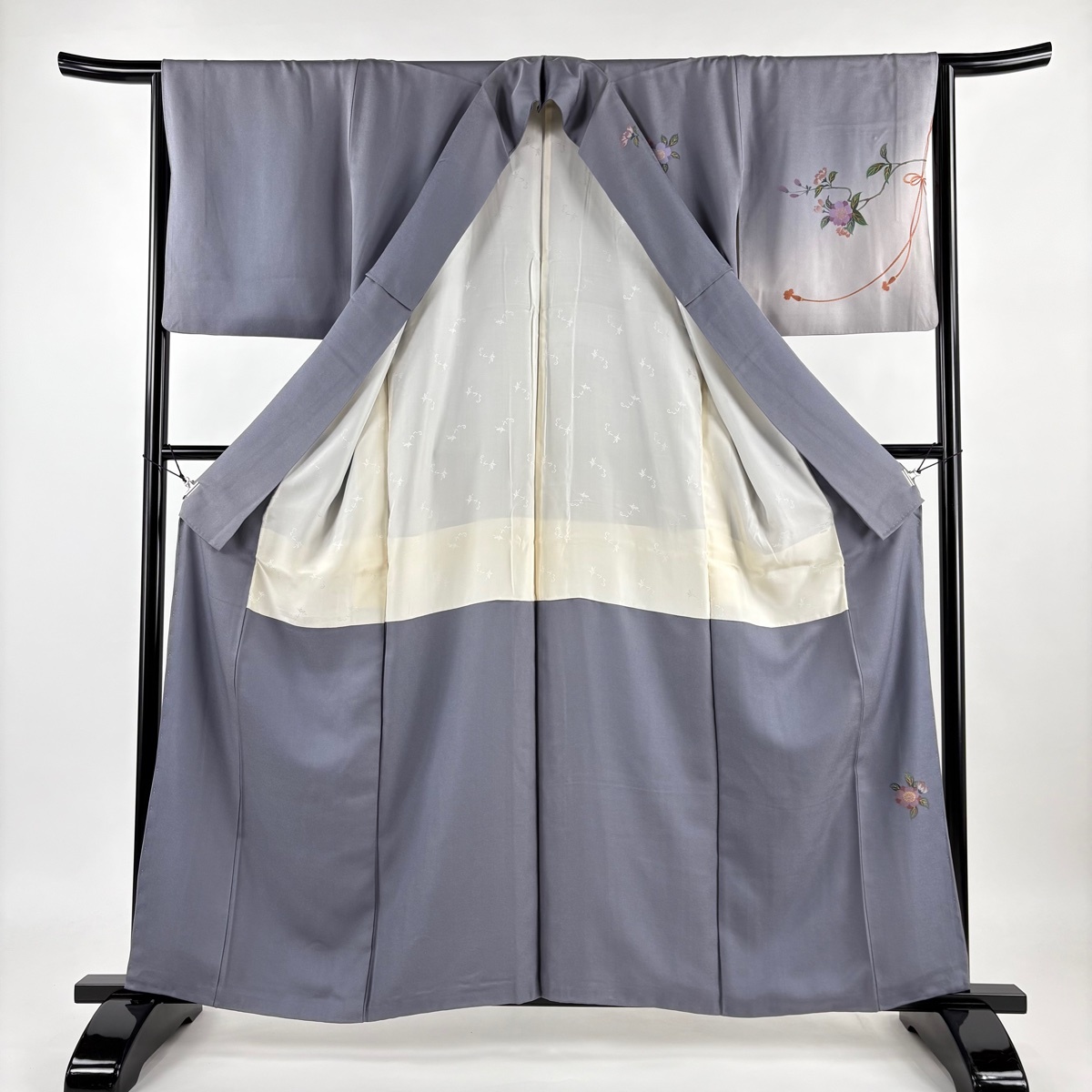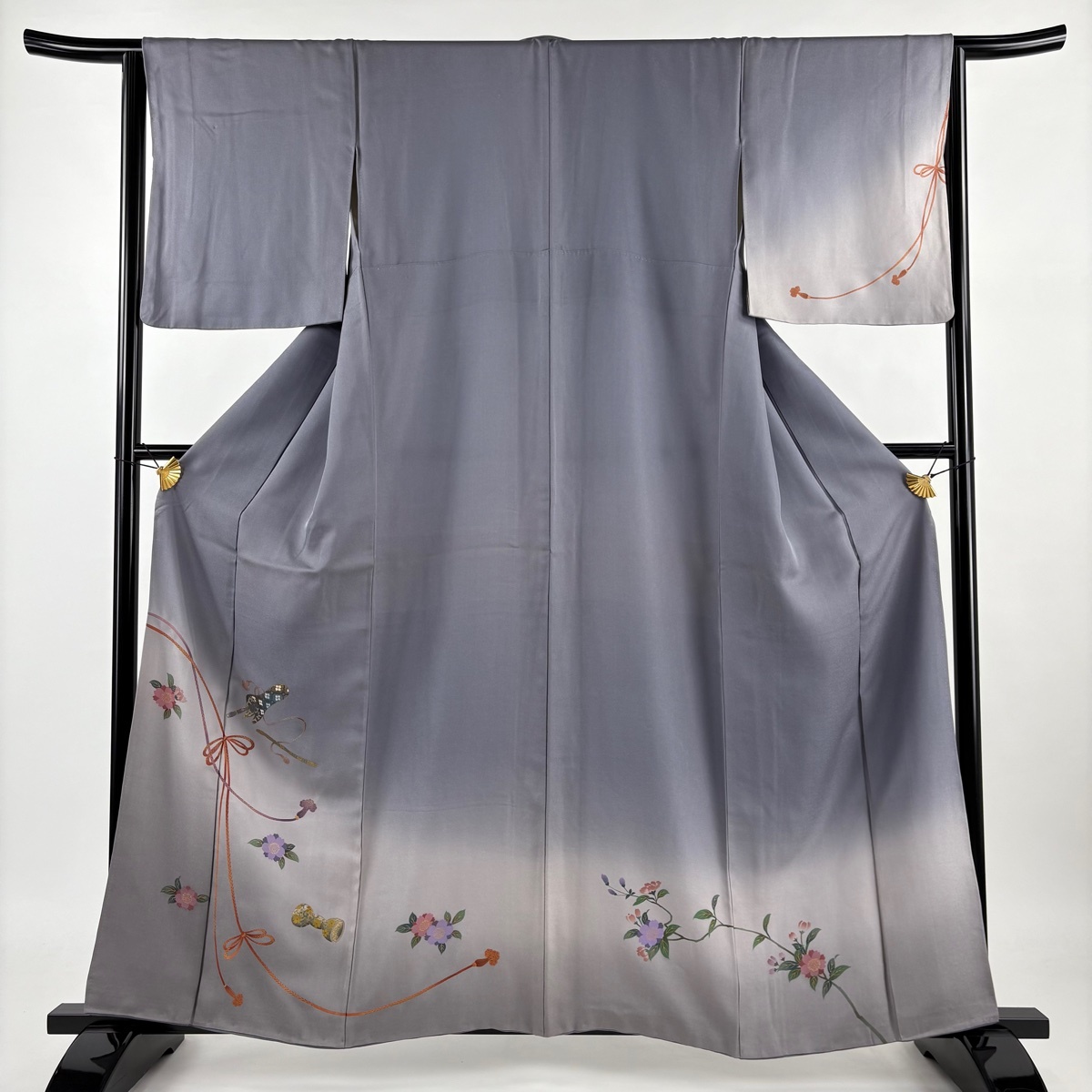 | 訪問着 優品 桜 笛 金彩 ぼかし 灰色 袷 身丈158 裄丈65 M 正絹 【中古】 |
