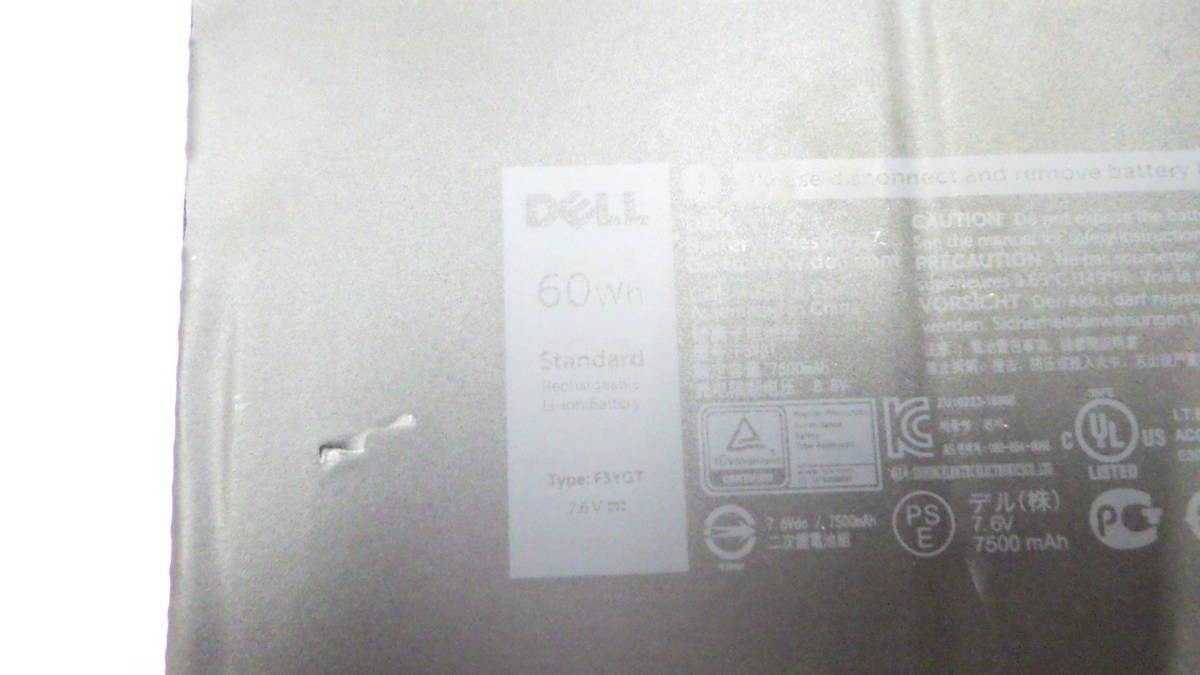 DELL F3YGT 7.6V 60Wh ケーブル付き Latitude E7280/E7380/E7480用純正バッテリー 中古動作品