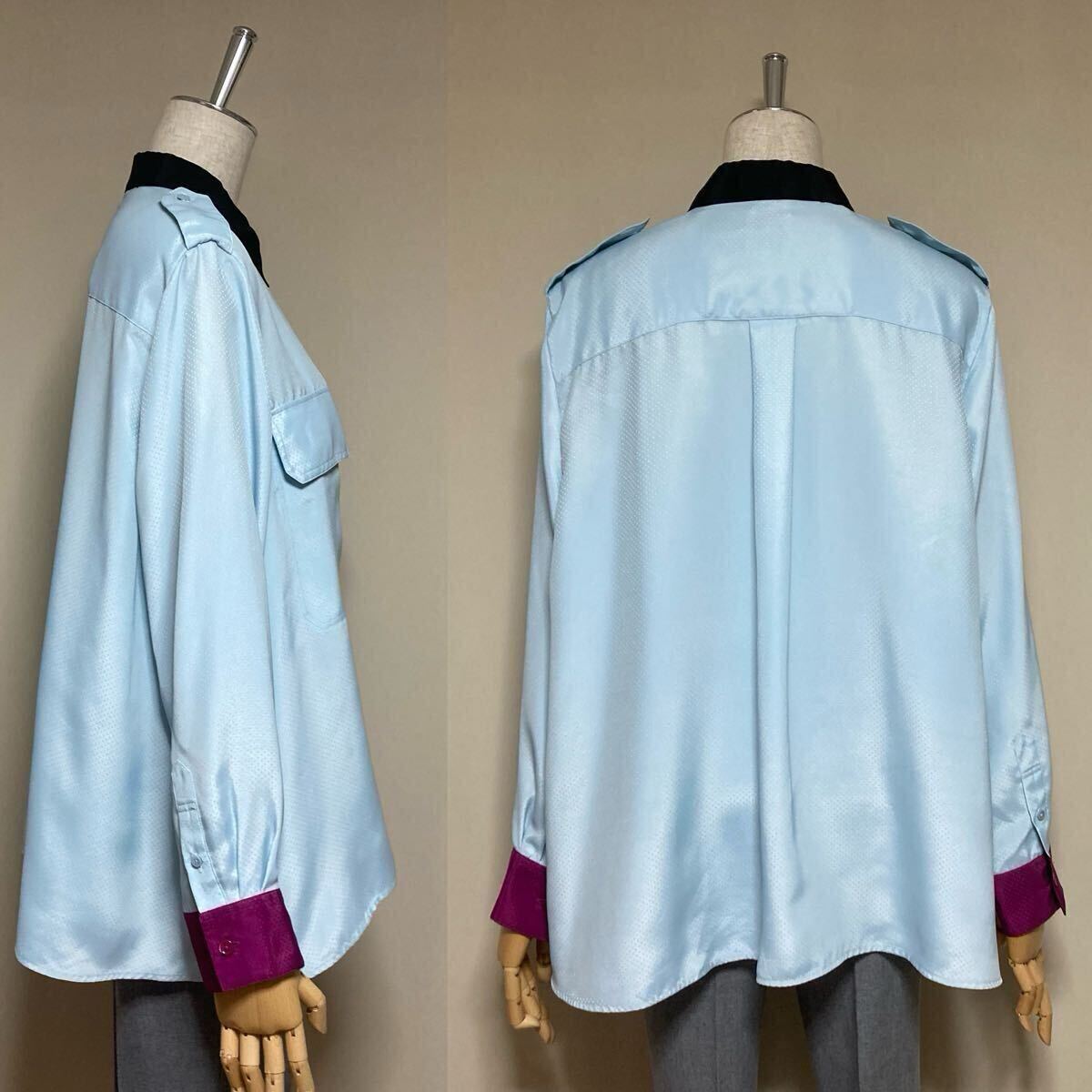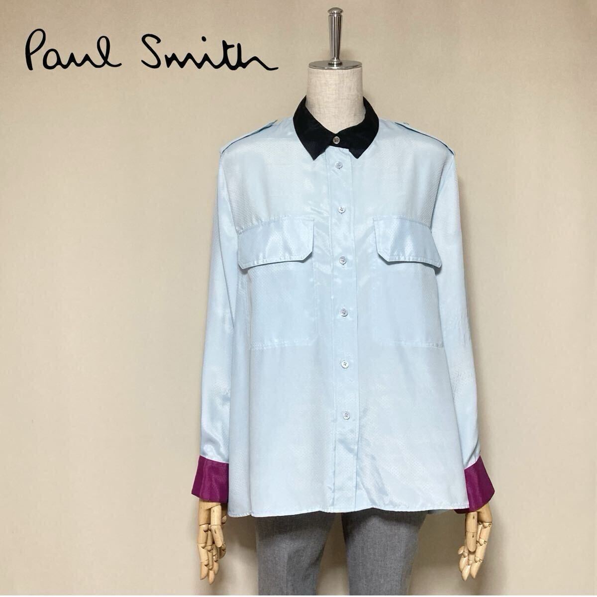 Paul Smith◇ポールスミス 洗える シャドーピンドット サファリシャツ バイカラー 44L/XLサイズ相当 ブルー系 レディース 大きいサイズ