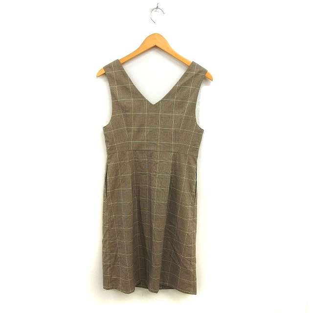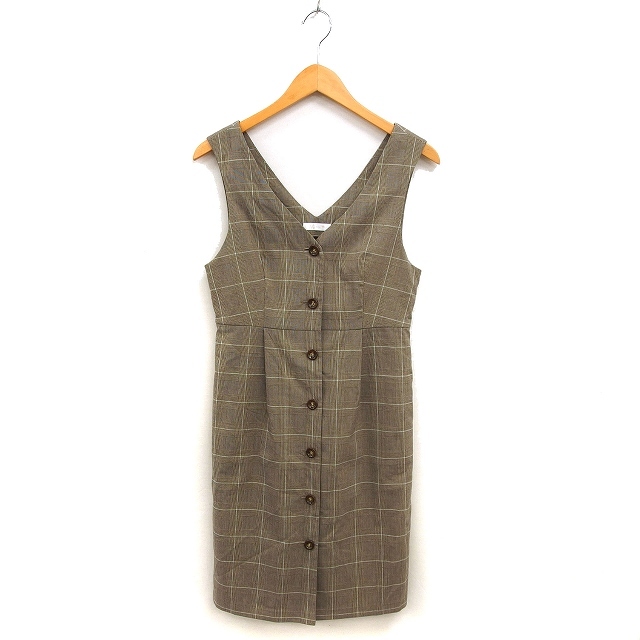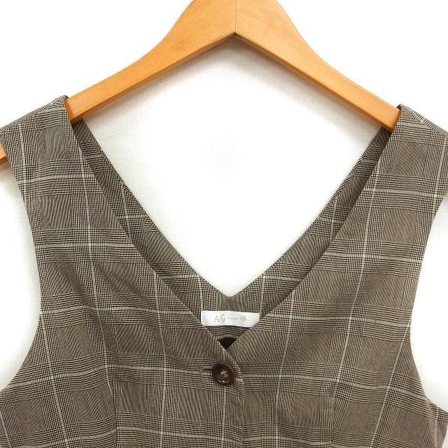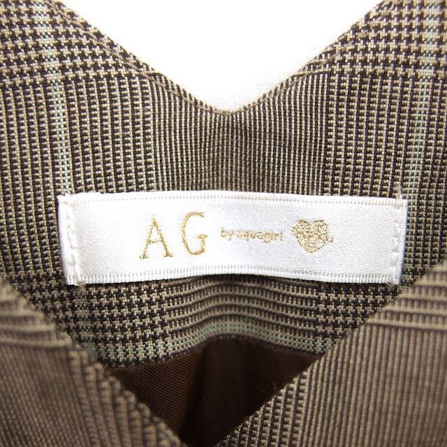 エージーバイアクアガール AG by aquagirl グレンチェック ジャンパースカート フレア ひざ丈 フロントボタン M 茶 ブラウン /NT5