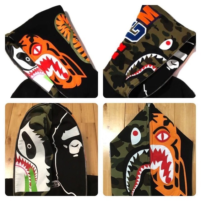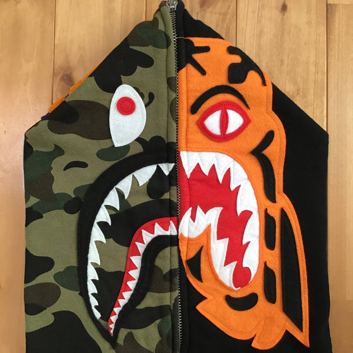 a bathing ape Crazy face タイガーシャークパーカー ブラック × 1st camo green XLサイズ です★