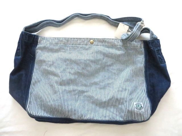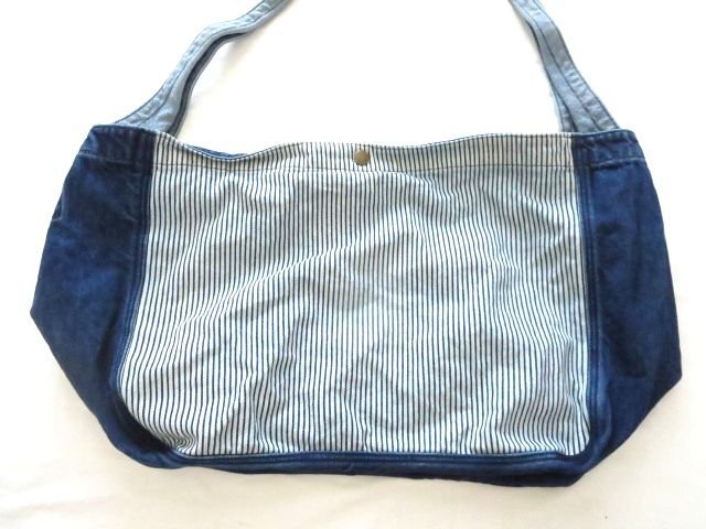 ヒッコリーデニム ニュースペーパーバッグ(40×30×19cm)。未使用の品です、保管歴ございます。ノークレームノーリターンノーキャンセルでお願いします。