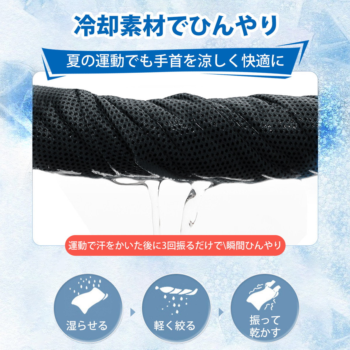 【ひんやり冷感、熱中対策に最適】:接触冷感繊維を採用し、装着した瞬間からひんやり。さらに表面の速乾層が汗をすばやく蒸発させ、気化熱で手首まわりをクールダウン。夏のスポーツやアウトドアに最適です。