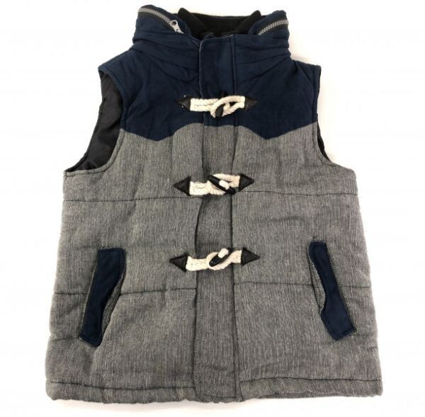 N.CREW アメカジ トグルボタン ウエスタンヨーク 中綿ベスト フード収納 キッズ 子供服 150 グレー/紺 です。