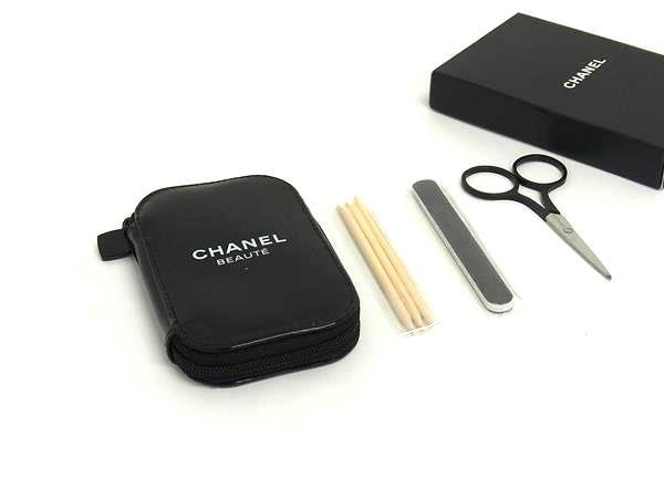■新品同様■ CHANEL シャネル ココマーク パテントレザー ネイルケアセット ウッドスティック 爪やすり ハサミ ブラック系 DJ5414