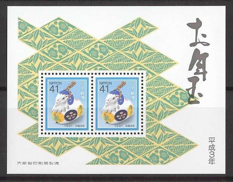 H03 年賀切手 お年玉小型シート 平成3年用 羊鈴