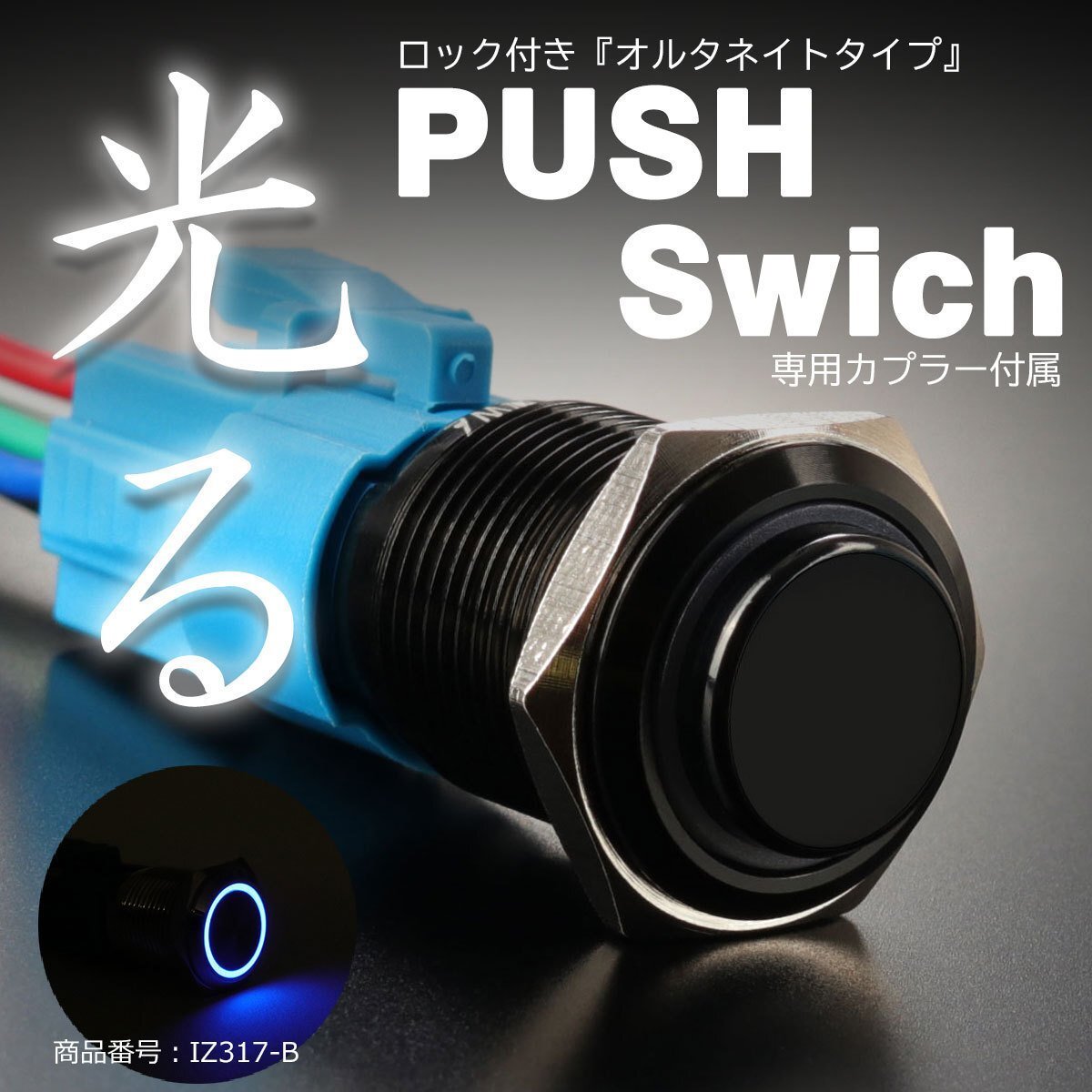 ■商品コード IZ317-B ■商品タイトル プッシュスイッチ 18Φ ブルー LEDリング付き オルタネイトタイプ ■商品説明 一度押すとボタンが凹んで保持、もう一度押すと元に戻るオルタネイトタイプ。 配線方法でオン/オフはお好みに設定可能。 LEDの点灯も常時点灯、スイッチの動作に合わせての点灯など工夫次第で カスタマイズ可能。専用カプラー付属でスイッチへの配線作業もカンタン。 ■商品概要 ・LEDカラー:ブルー ・スイッチ種類:オルタネイト式 ・動作電圧:DC12V (MAX 3A) ・入数:数量1で1セット ■サイズ:画像に掲載 ■注意 ※出品商品はタイトルのサイズ・発光色です。 ■その他カラー |