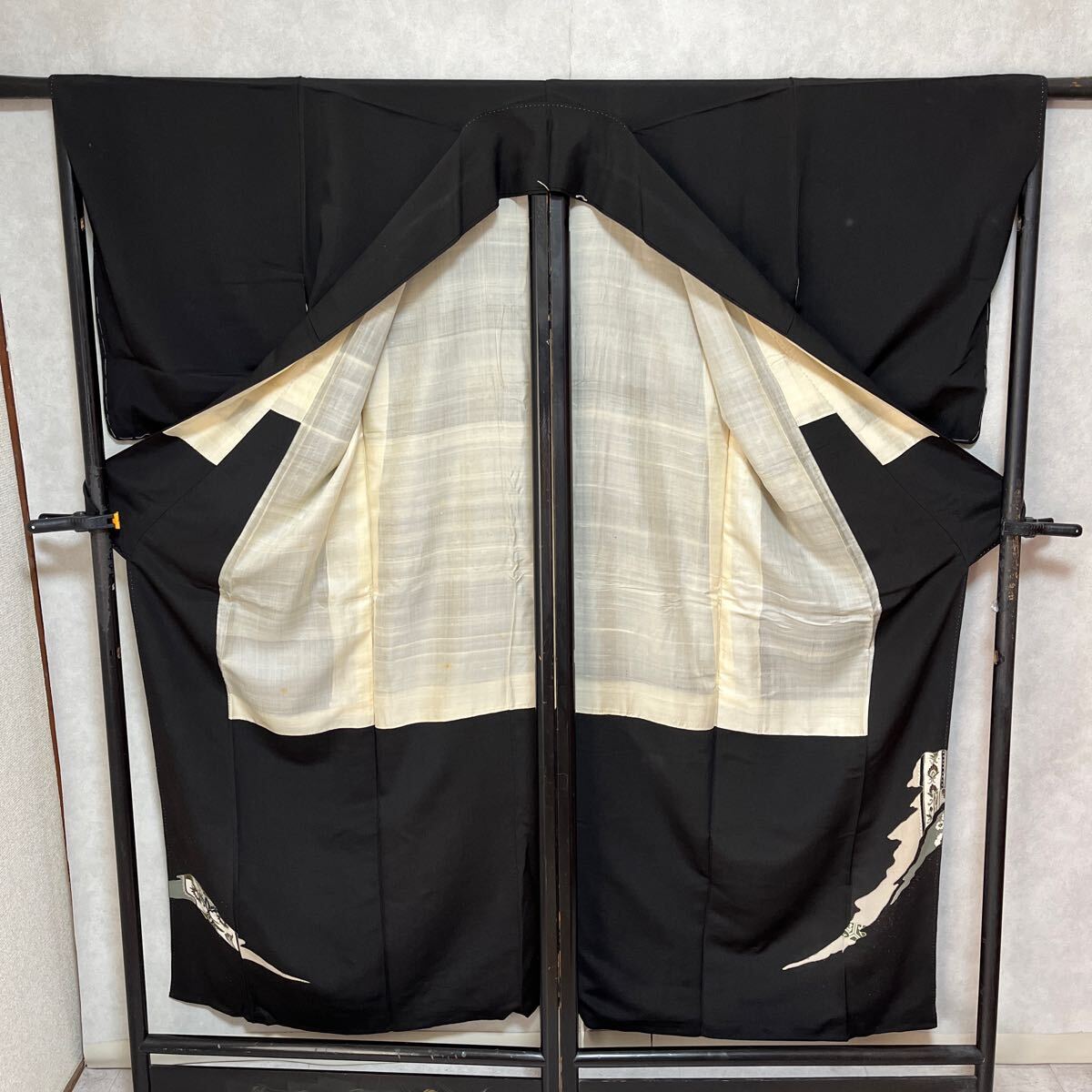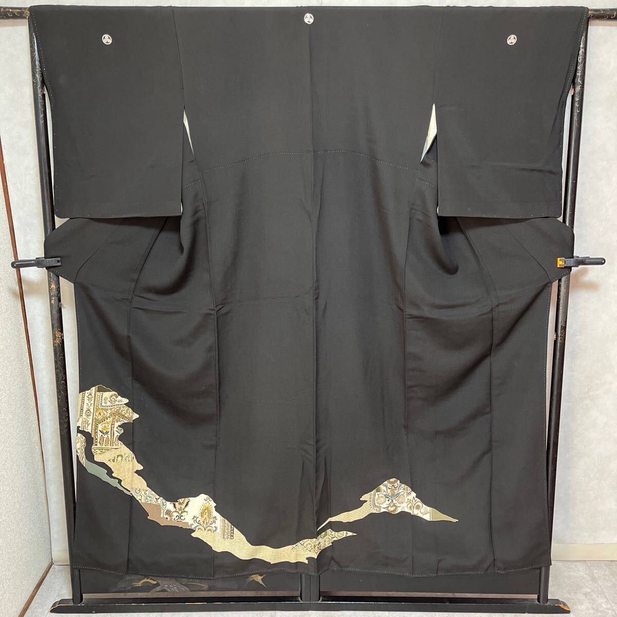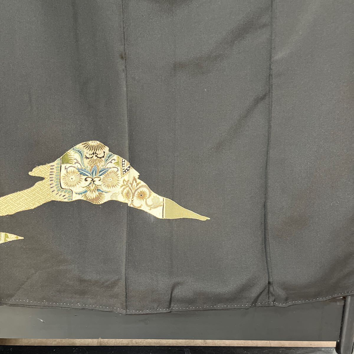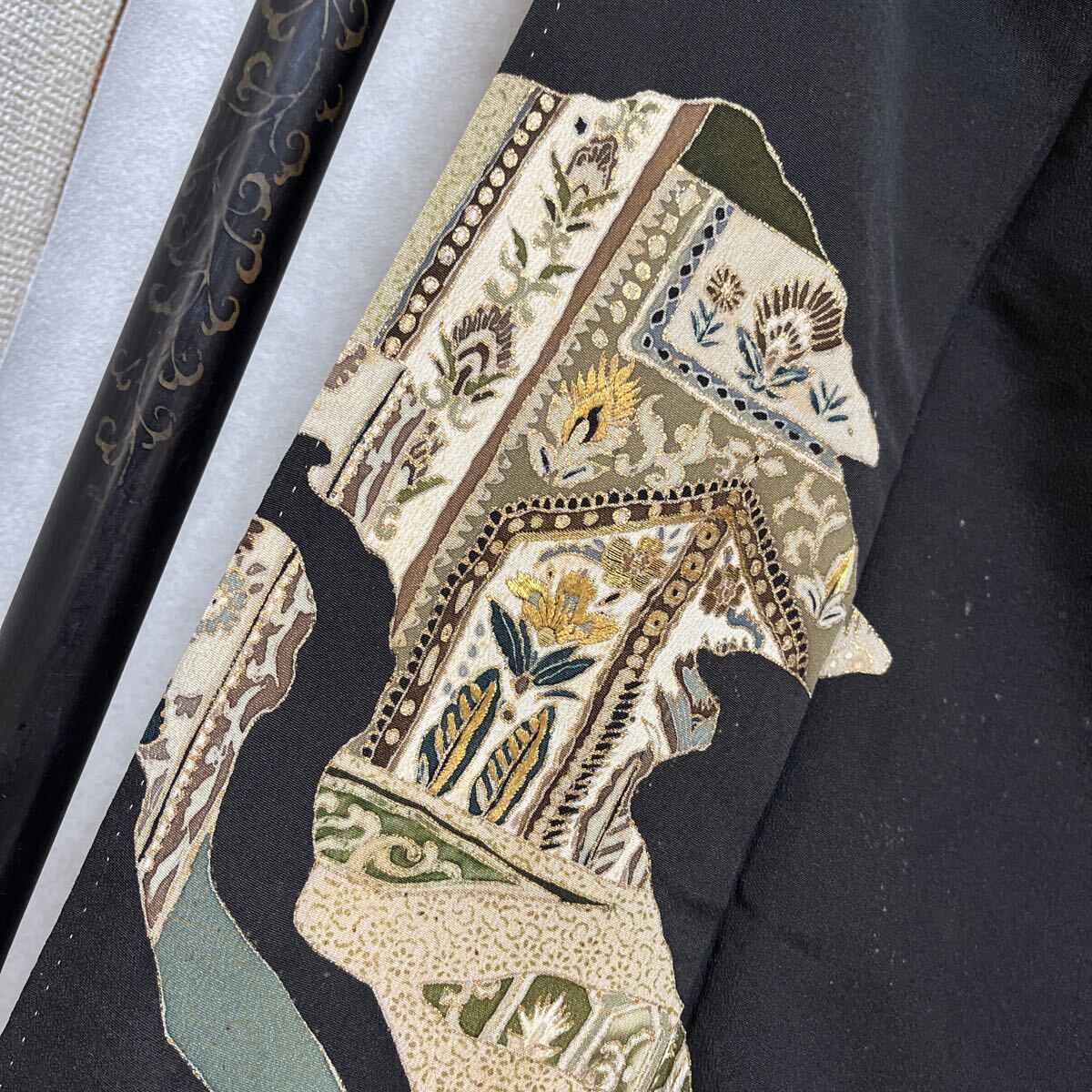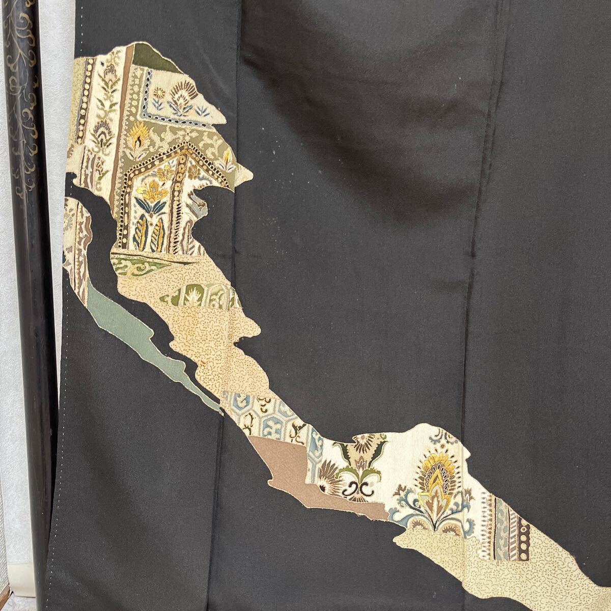アンティーク 着物 黒留袖 金 刺繍 オリエンタル 正絹 昭和レトロ 大正ロマン モダン 和洋折衷コーデ リメイク け03-07t