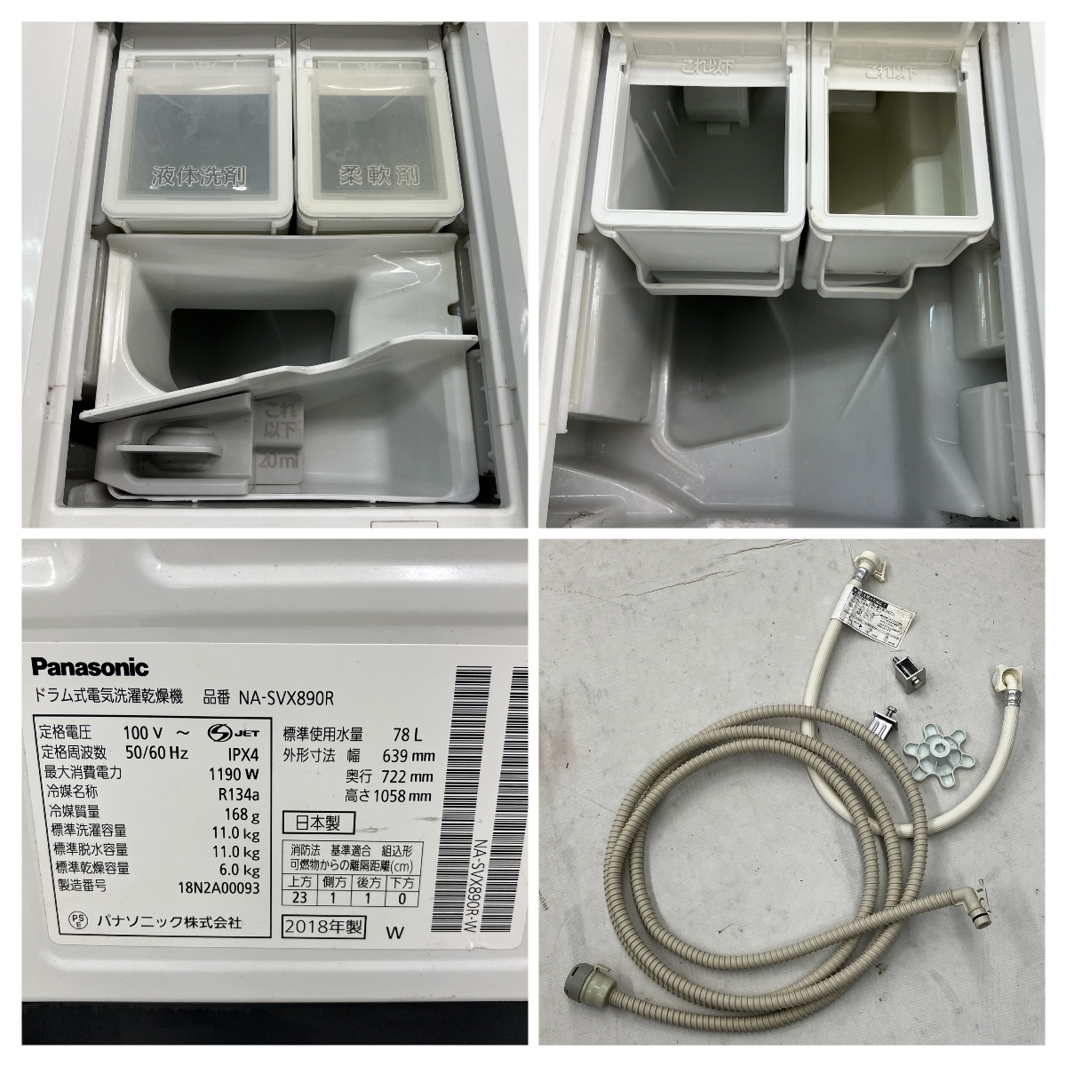 Panasonic NA-SVX890R ドラム式 洗濯乾燥機 右開き 2018年製 家電 パナソニック 中古 楽C10177563 |