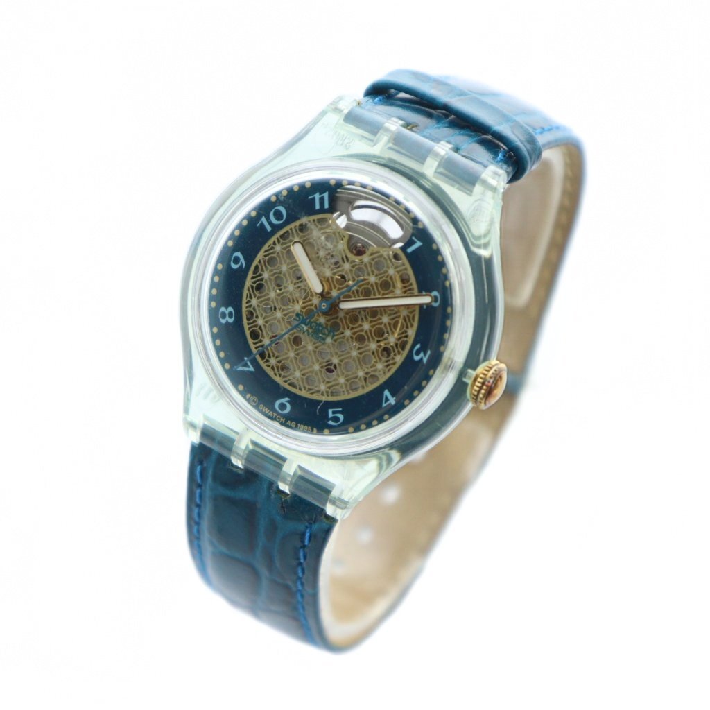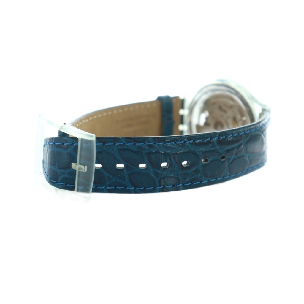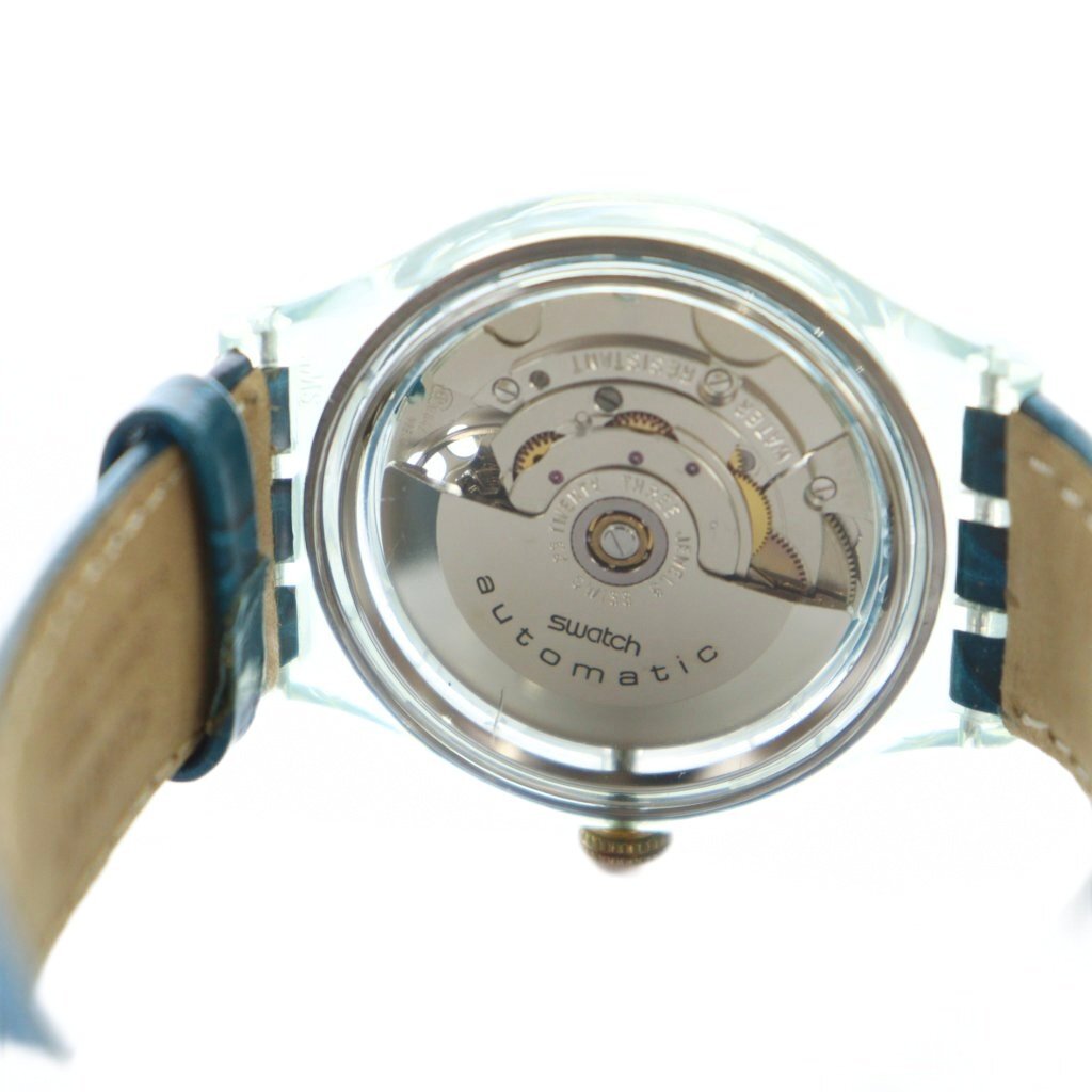 スウォッチ SWATCH 腕時計 ウォッチ 自動巻き スケルトン クリア ロゴ レザーベルト 青 ブルー ■GY11 /MQ メンズ