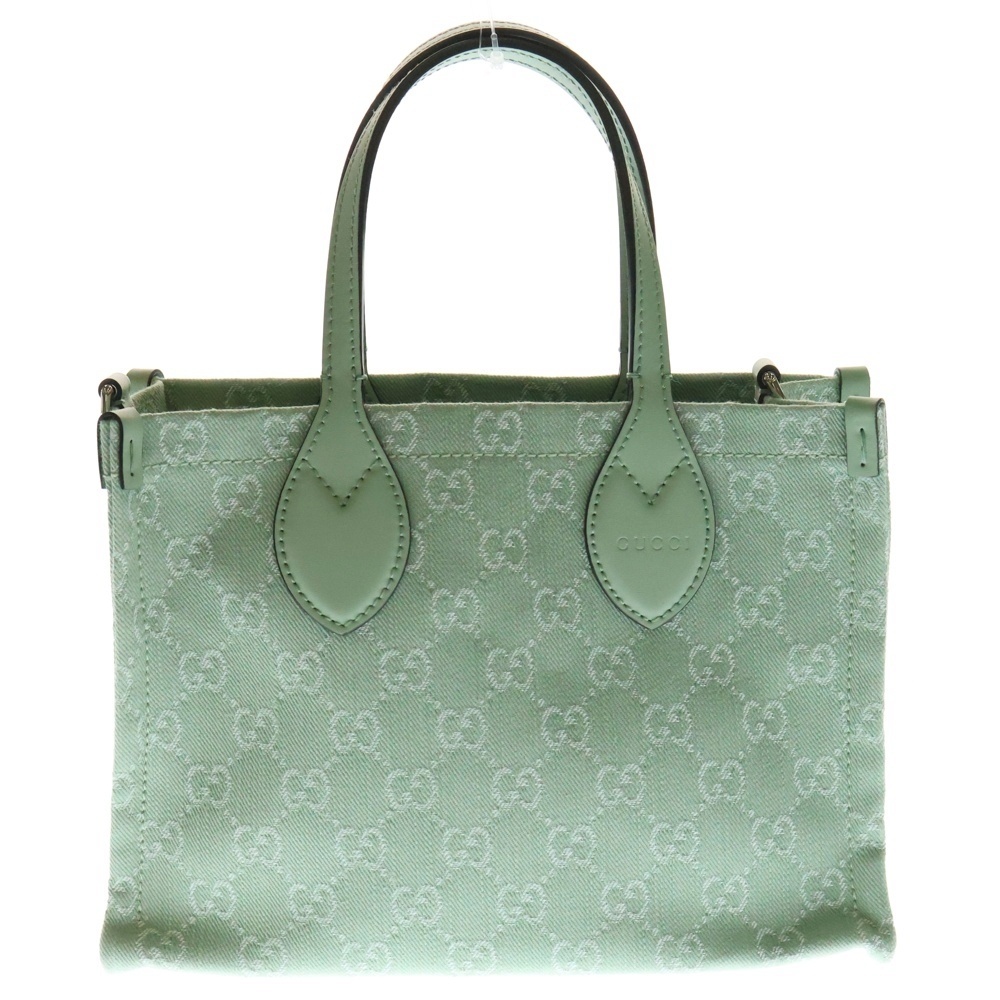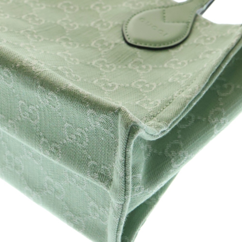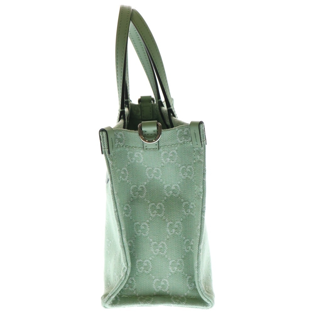 GUCCI グッチ オフディア ミディアム トートバッグ ハンドバッグ グリーン デニム×レザー 772183