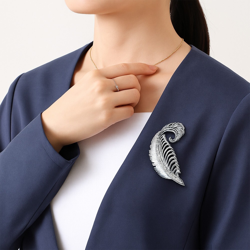 羽 立体彫刻 ヴィンテージ フェザー ブローチ シルバートーン ラインストーン装飾 コスチュームジュエリー 大ぶり 存在感 SOA59