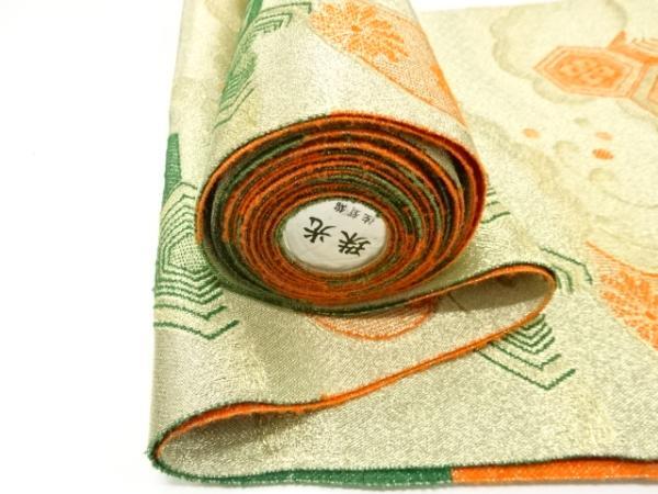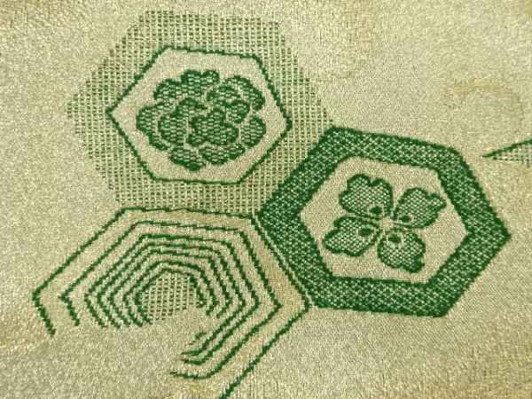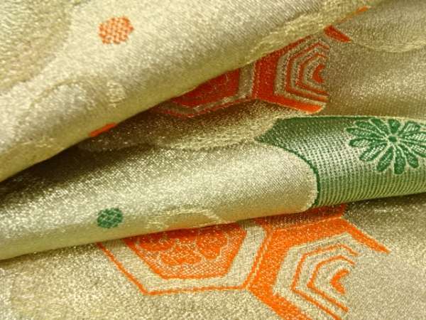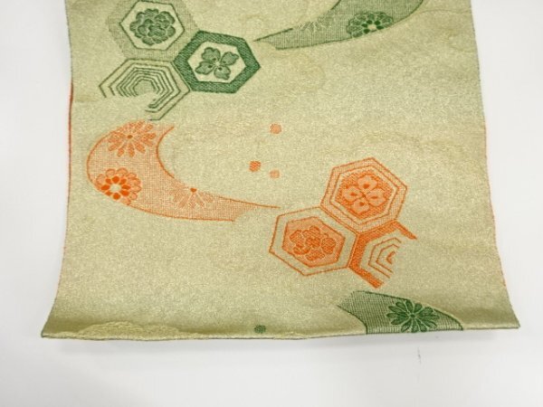 ys7511544; 流水に花亀甲模様織り出し 名古屋帯地反物【アンティーク】【着】
