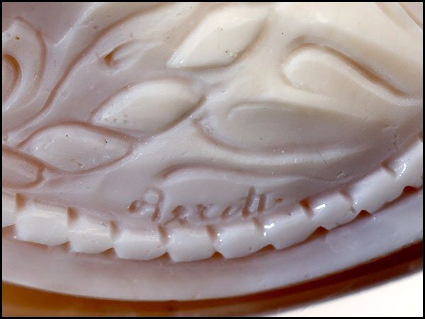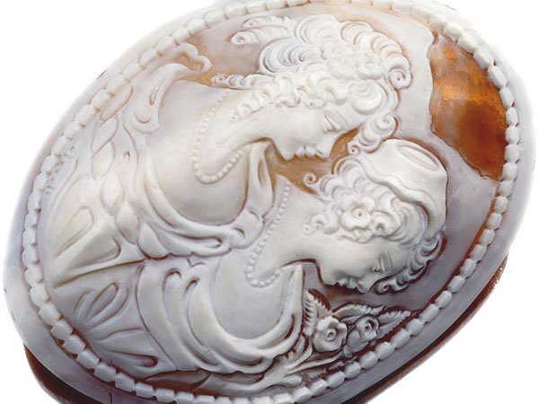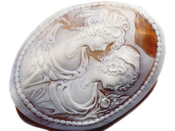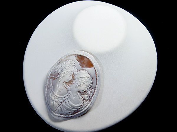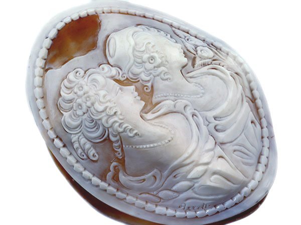 作家品サイン有り!二人の貴婦人の彫刻が魅力的な大判シェルカメオルースを激安価格で特別大放出致します!