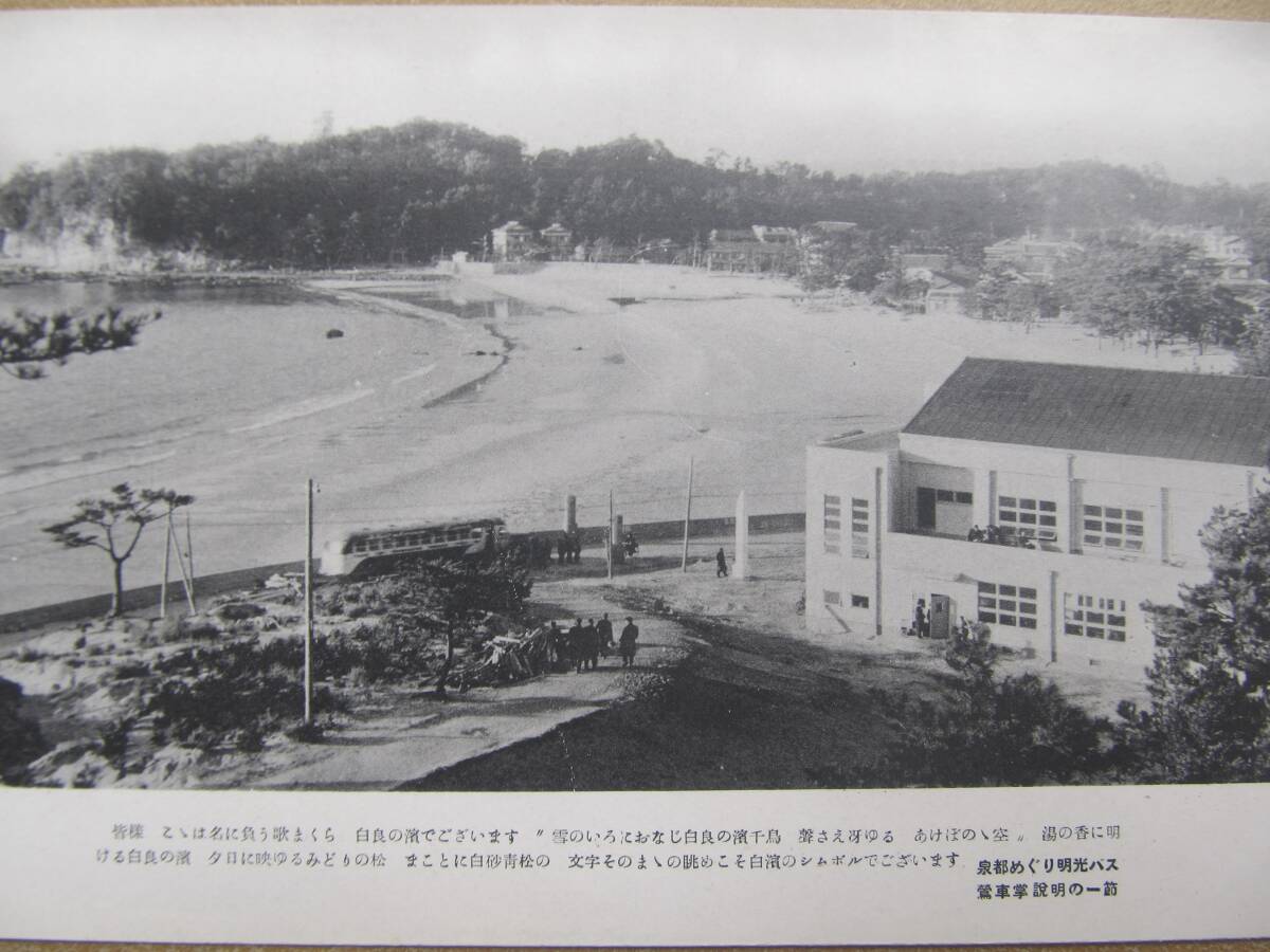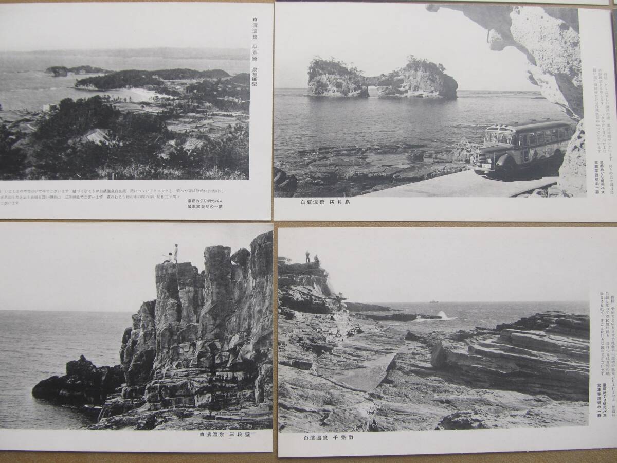 昭30頃 和歌山【白浜温泉名所】繪葉書 8枚,袋 *ボンネットバス*