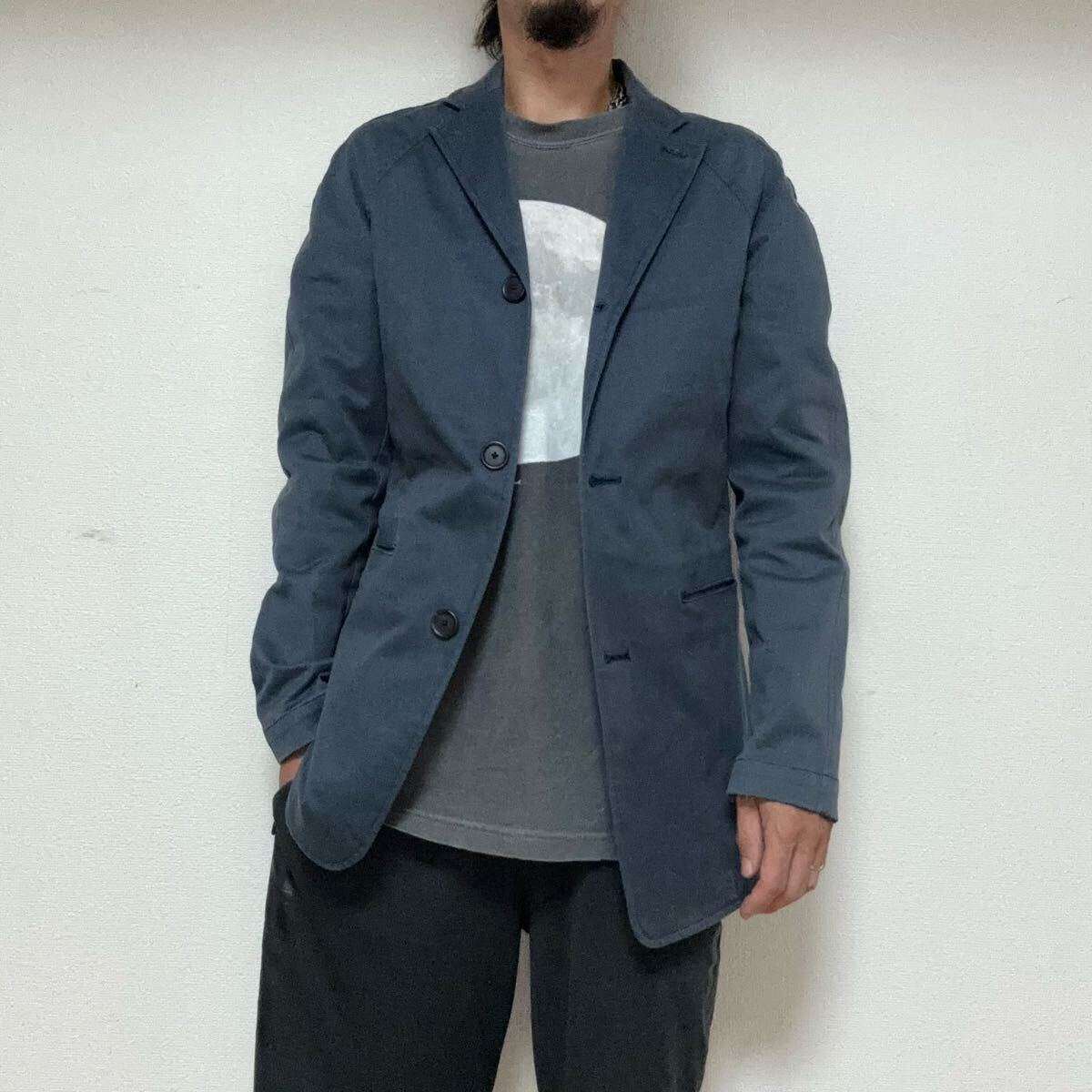 コンサバなイメージの通りシルエットが綺麗ですが生地感やラグランスリーブ等ワークな雰囲気も纏っていて少しグランジなコーディネートでもハマる幅広い一枚です。