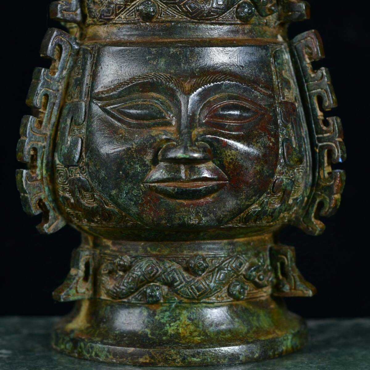 唐物 漢代 青銅 人面花觚 銅製品 青銅器 極細工 古美術品 時代物 中国古玩 骨董品 D69