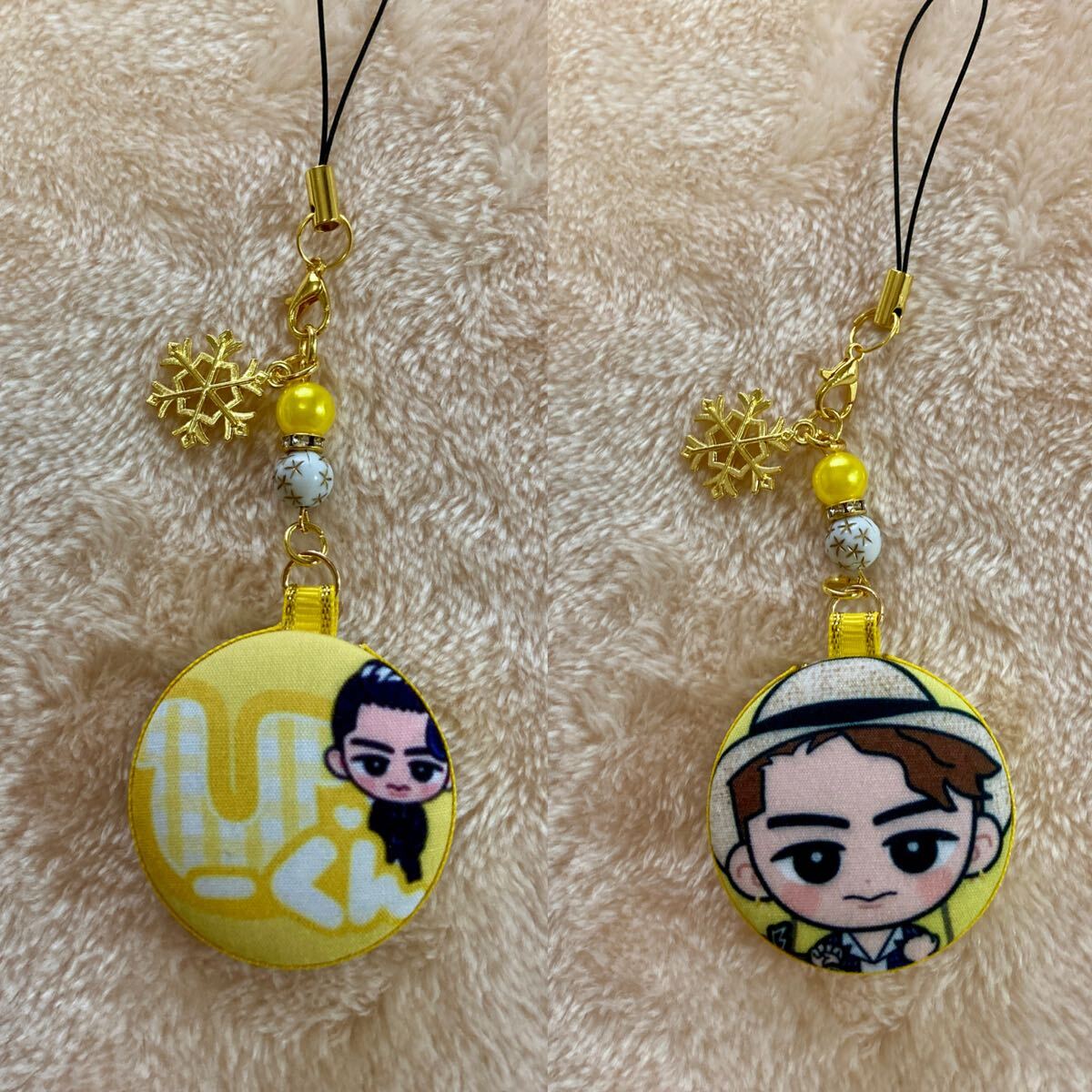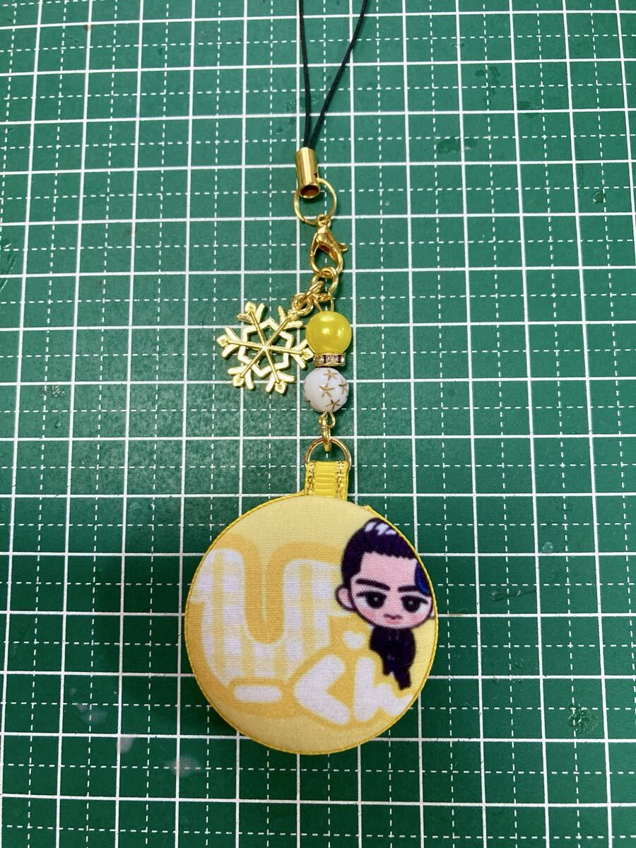 38mmのくるみボタンで作ったリバーシブルストラップです(^^)