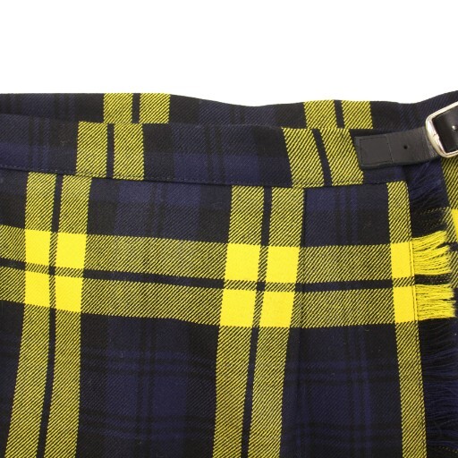 オニール オブ ダブリン Spick&Span別注 ラップスカート 巻き プリーツ ミモレ ロング ベルト チェック柄 ウール 牛革 I42 黄色 紺