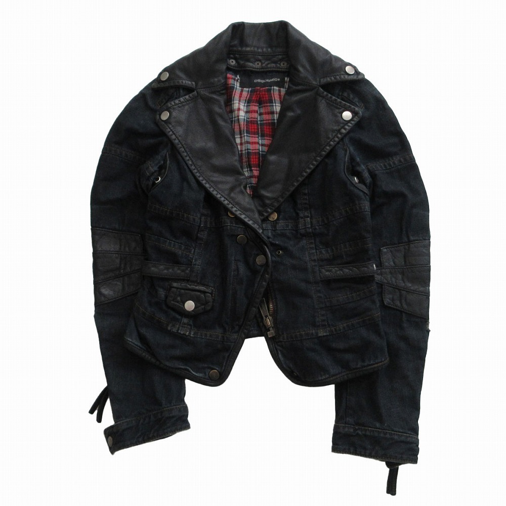 【DSQUARED2 ディースクエアード 73K012 TF478 レザー 切替 デニムジャケット チェック柄裏地 サイズL レディース】 | |