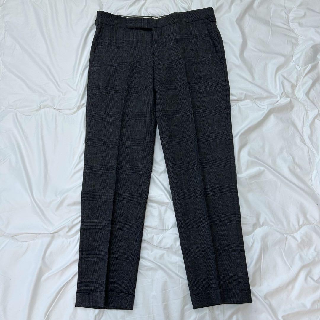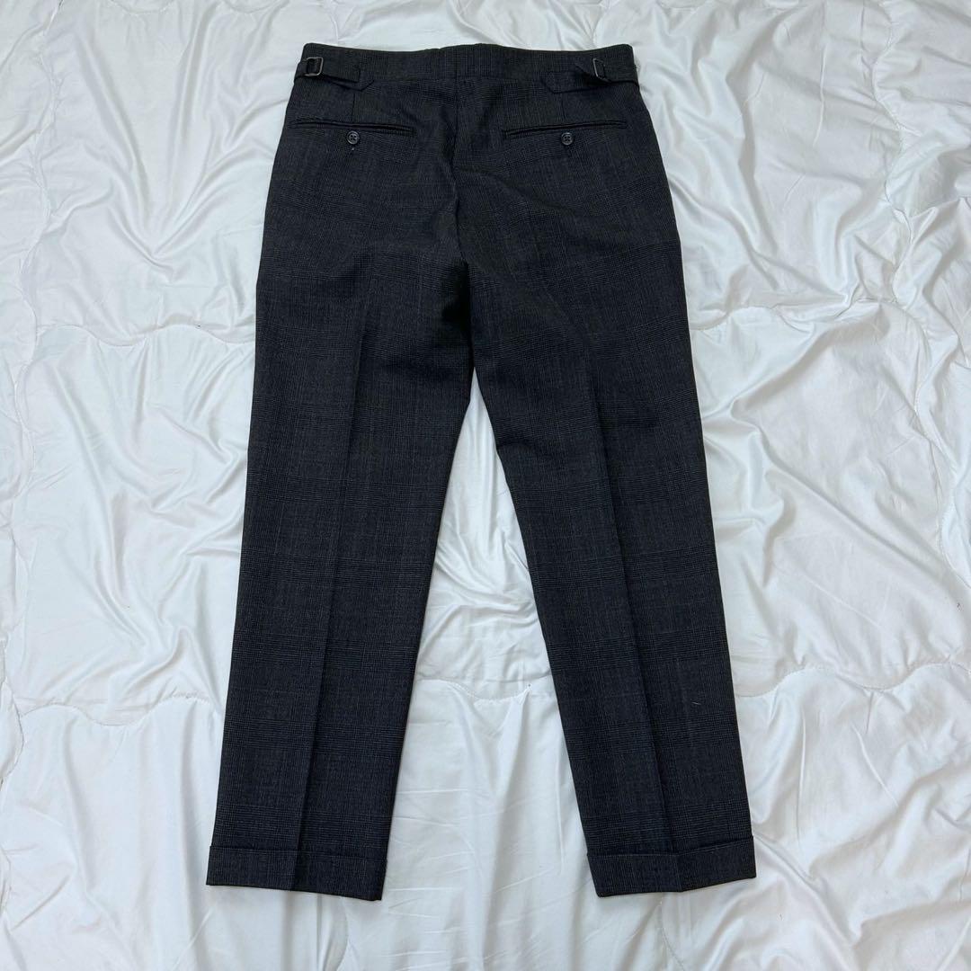 商品説明: クラシックな魅力が際立つグレーのチェック柄セットアップスーツです。落ち着いたトーンのグレーに細やかなチェックを配し、上品で洗練された印象を演出。ジャケットは立体的なシルエットで仕立てられており、パンツもスマートなラインが特徴です。
