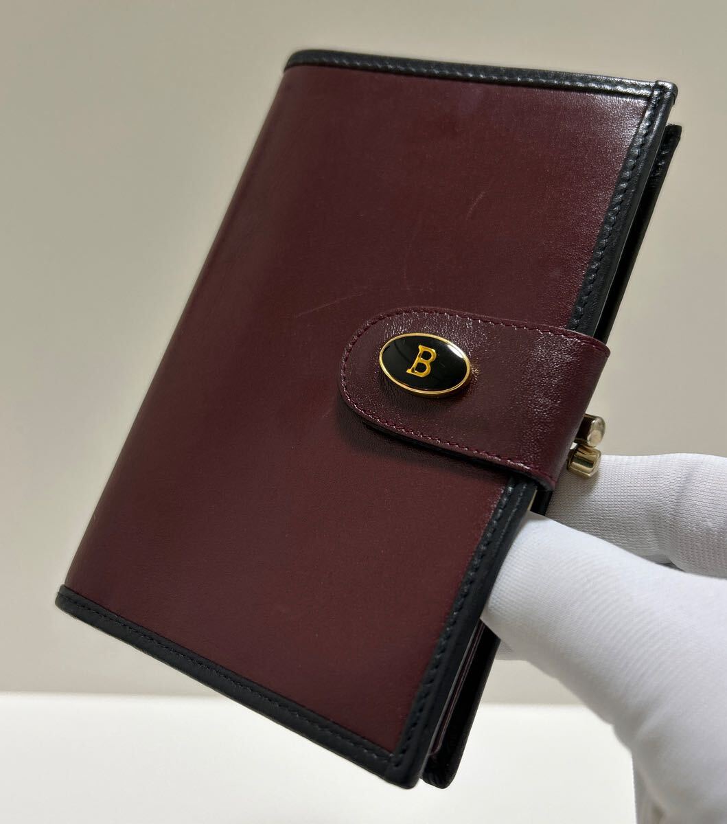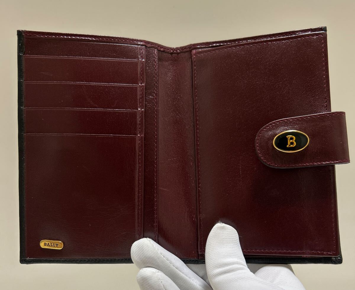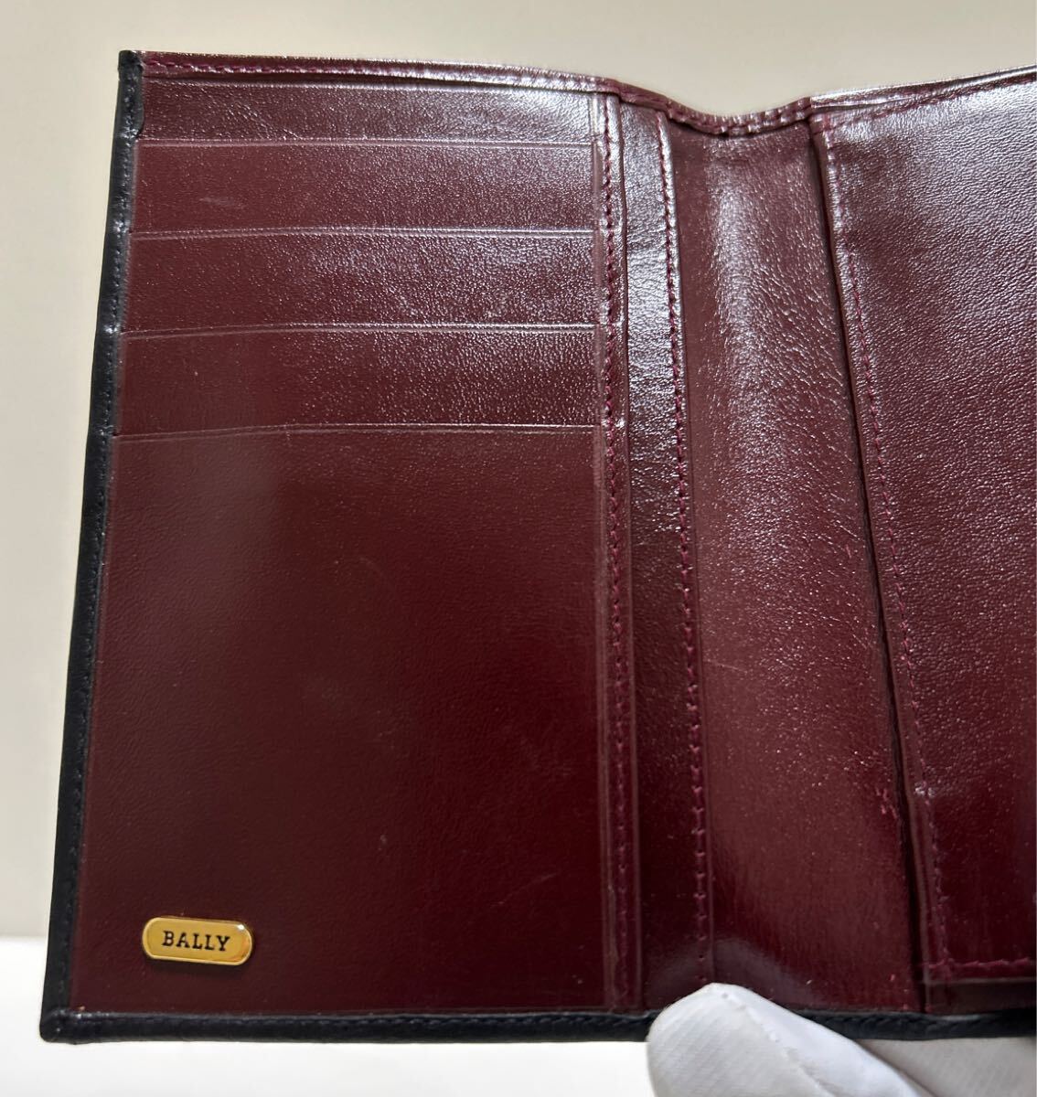 ☆良品☆ ◆BALLY バリー がま口 折り財布 ボルドー×黒◆ 本革 ロゴ金具 ヴィンテージ イタリア製 正規品保証 【送料無料】0903