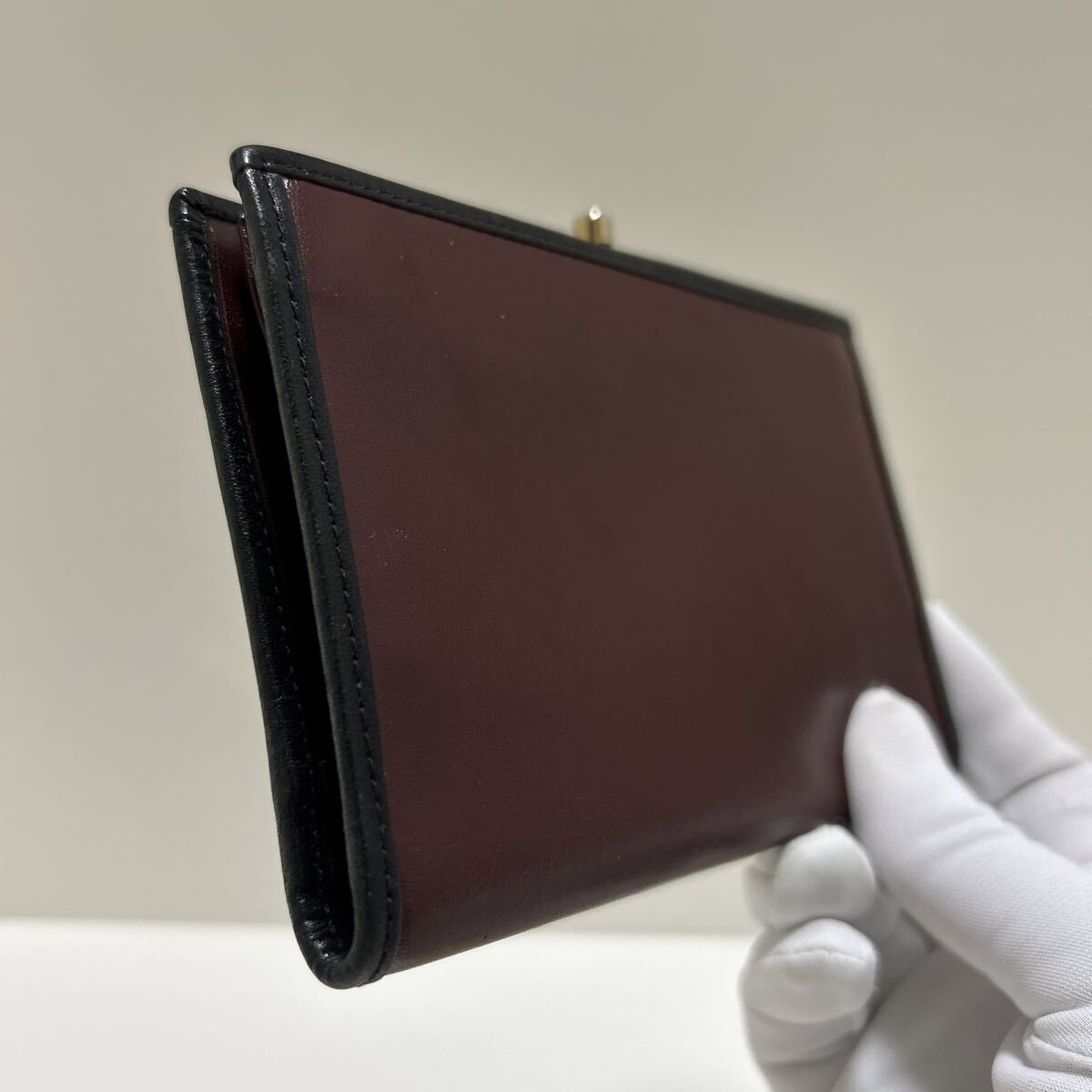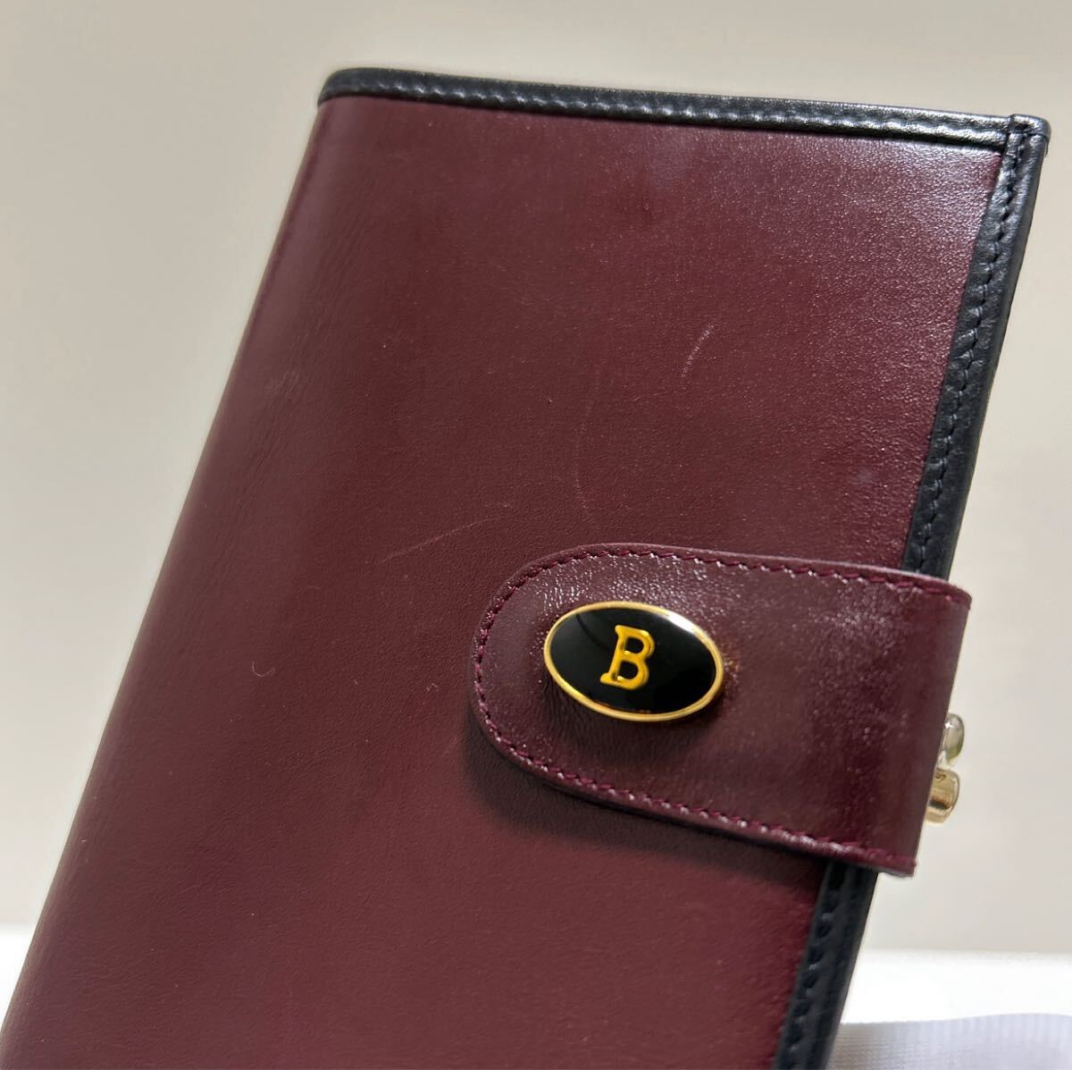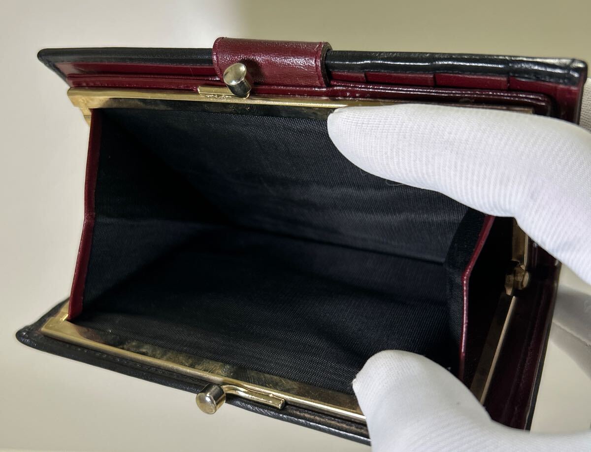 ☆良品☆ ◆BALLY バリー がま口 折り財布 ボルドー×黒◆ 本革 ロゴ金具 ヴィンテージ イタリア製 正規品保証 【送料無料】0903