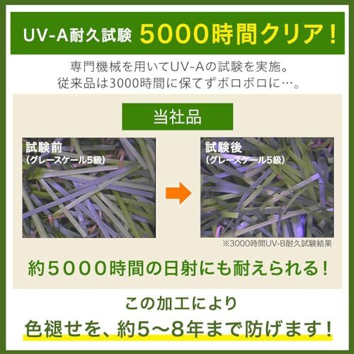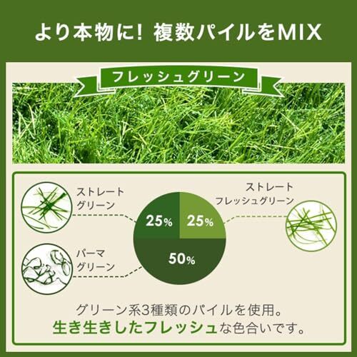 - 材質:芝(ポリエチレン、ポリプロピレン)、土台(ポリプロピレン、ラテックス)