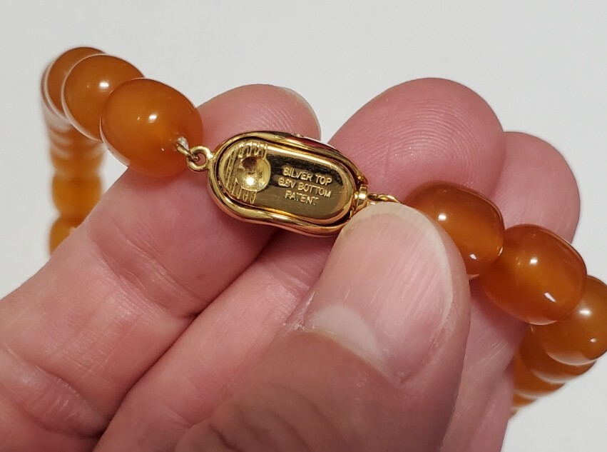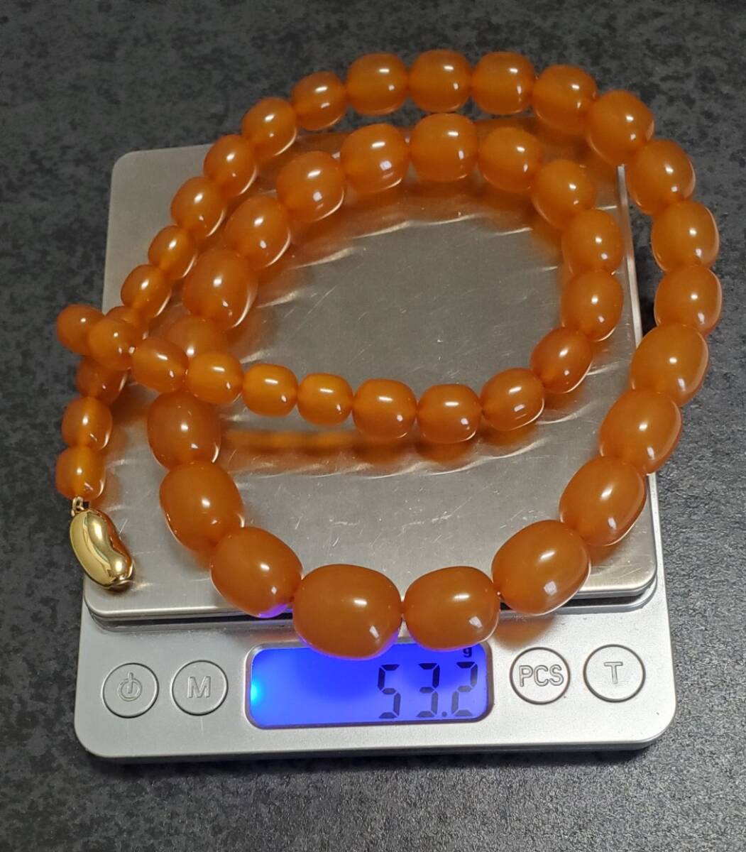 ゴージャス SILVER シルバー刻印 琥珀 コハク ネックレス レディース 50㎝ 53,2g 美品
