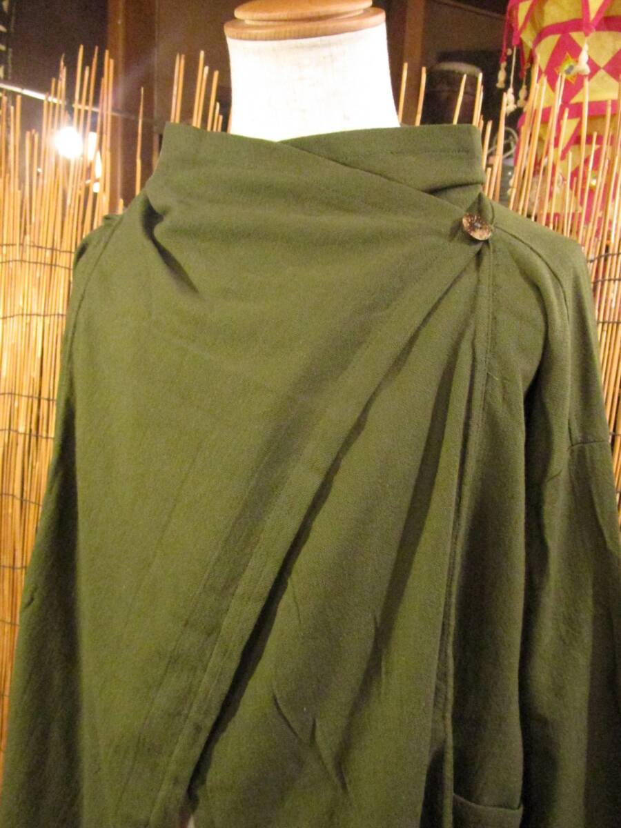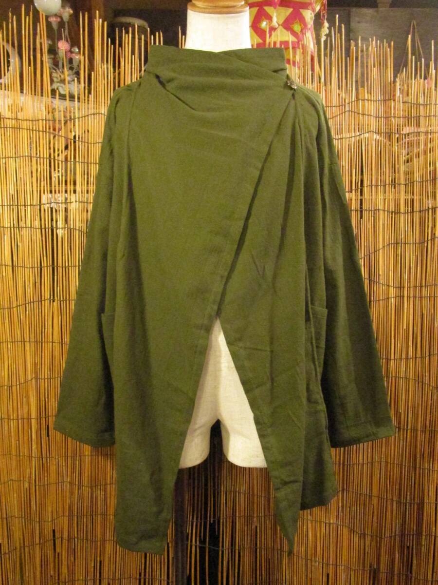 ⑥新品*男女兼用*カーキ色*コットン素材*ゆったりサイズ*2WAY*スナフキン*旅人風コート